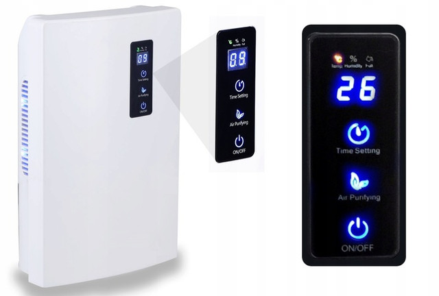 Осушувач має зрозумілу, просту у використанні сенсорну панель керування із синьою світлодіодною підсвіткою. Завдяки вбудованому термометру та гігрометру він показує поточну температуру поперемінно з активною вологістю навколишнього повітря, у якому він розміщений.