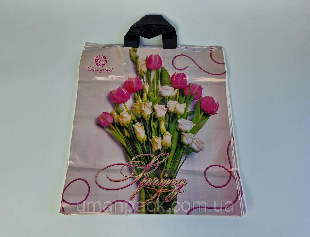 Пакет із петльовою ручкою 40*42 "Тюльпани на білому Ренпако (25 шт.)