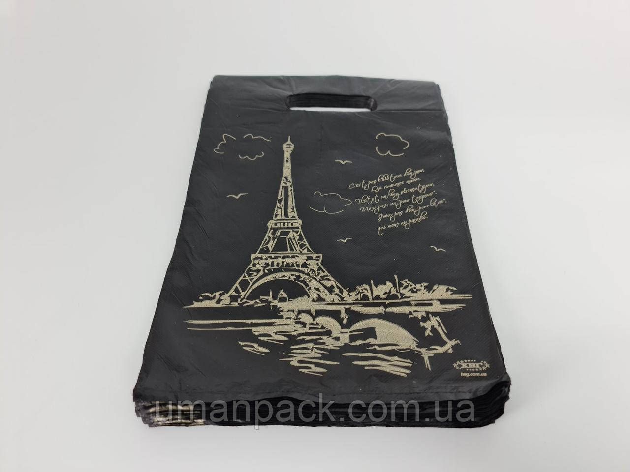 Пакети з вирубаною ручкою (20*30) "Париж чорний"ХВГ (100 шт.)