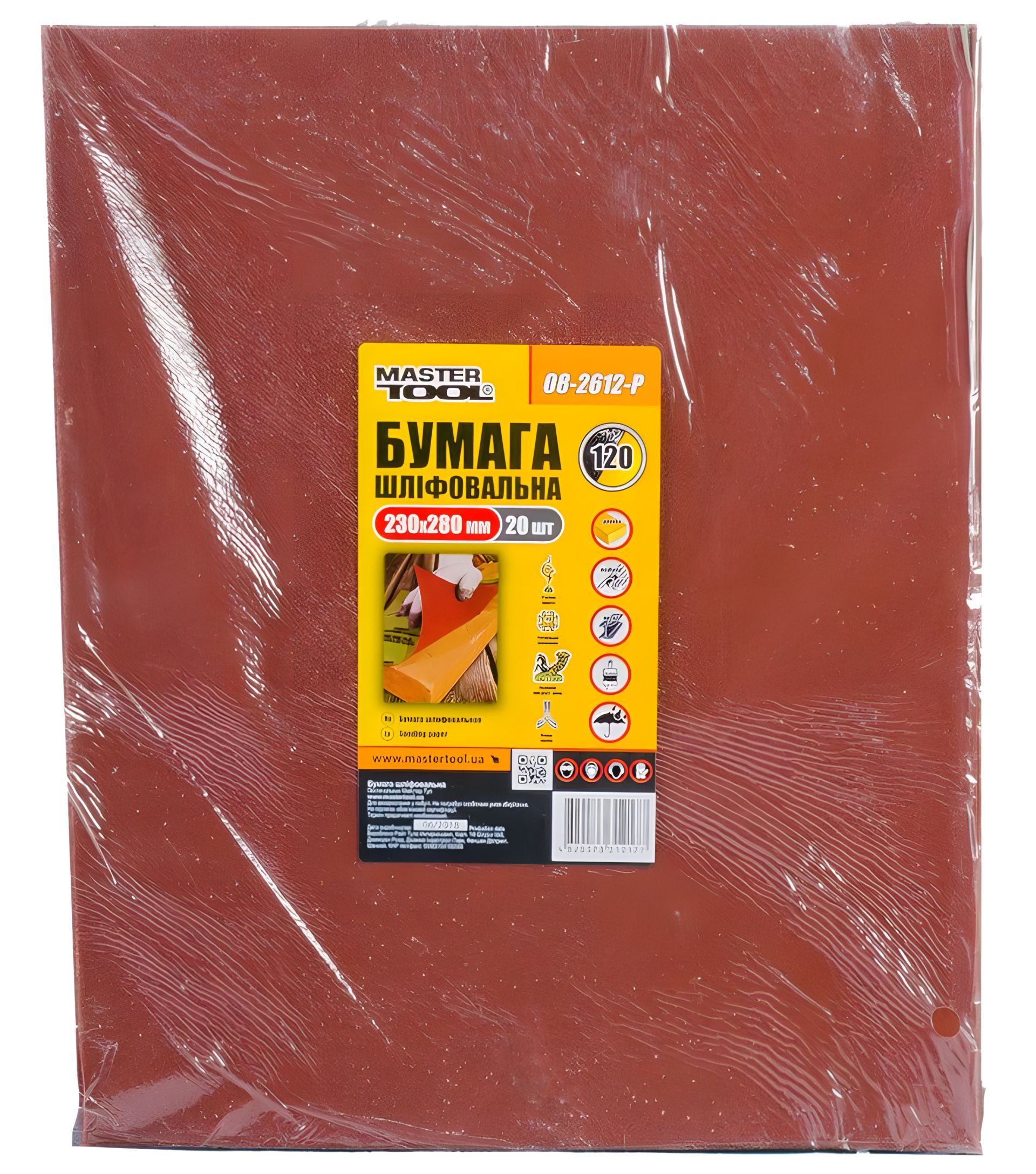 Водостійкий шліфувальний папір Р120 230×280 мм 20 шт MASTERTOOL 08-2612-Р