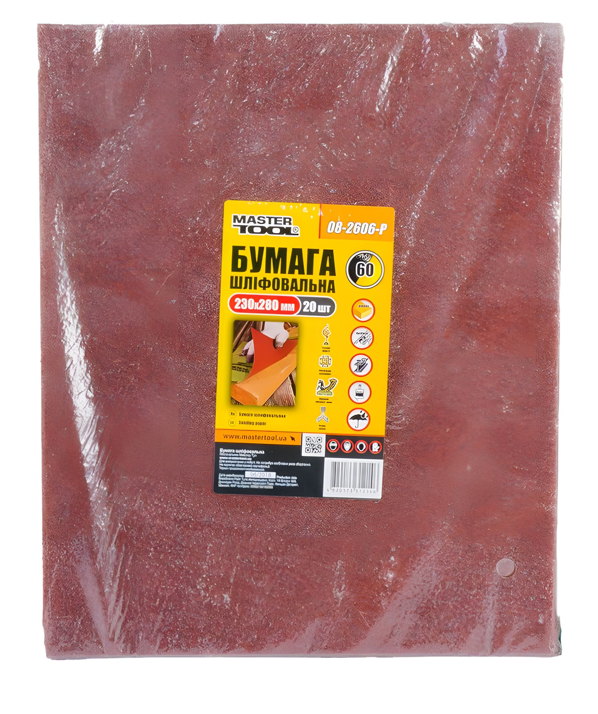 Папір шліфувальний водостійкий Р60 230×280 мм 20 шт MASTERTOOL 08-2607-Р