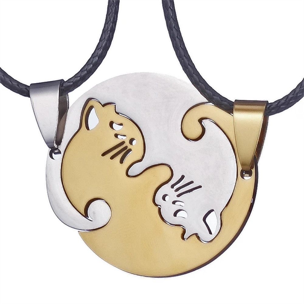 Парні підвіски для закоханих чорний і білий кіт Cat кішка кулони дві половинки