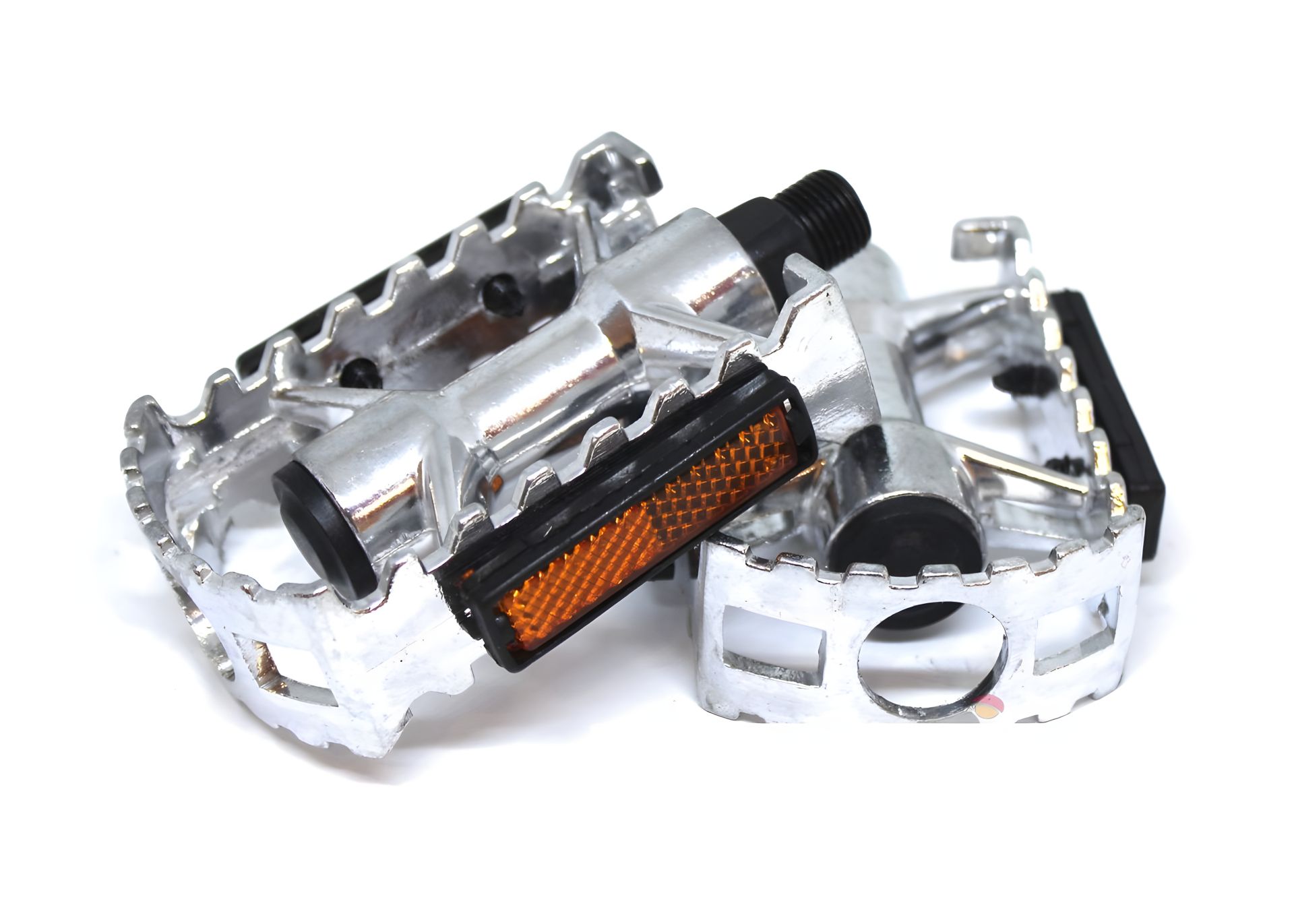 Педалі алюмінієві (сріблясті) для гірського велосипеда на кульках зі світловідбивачами