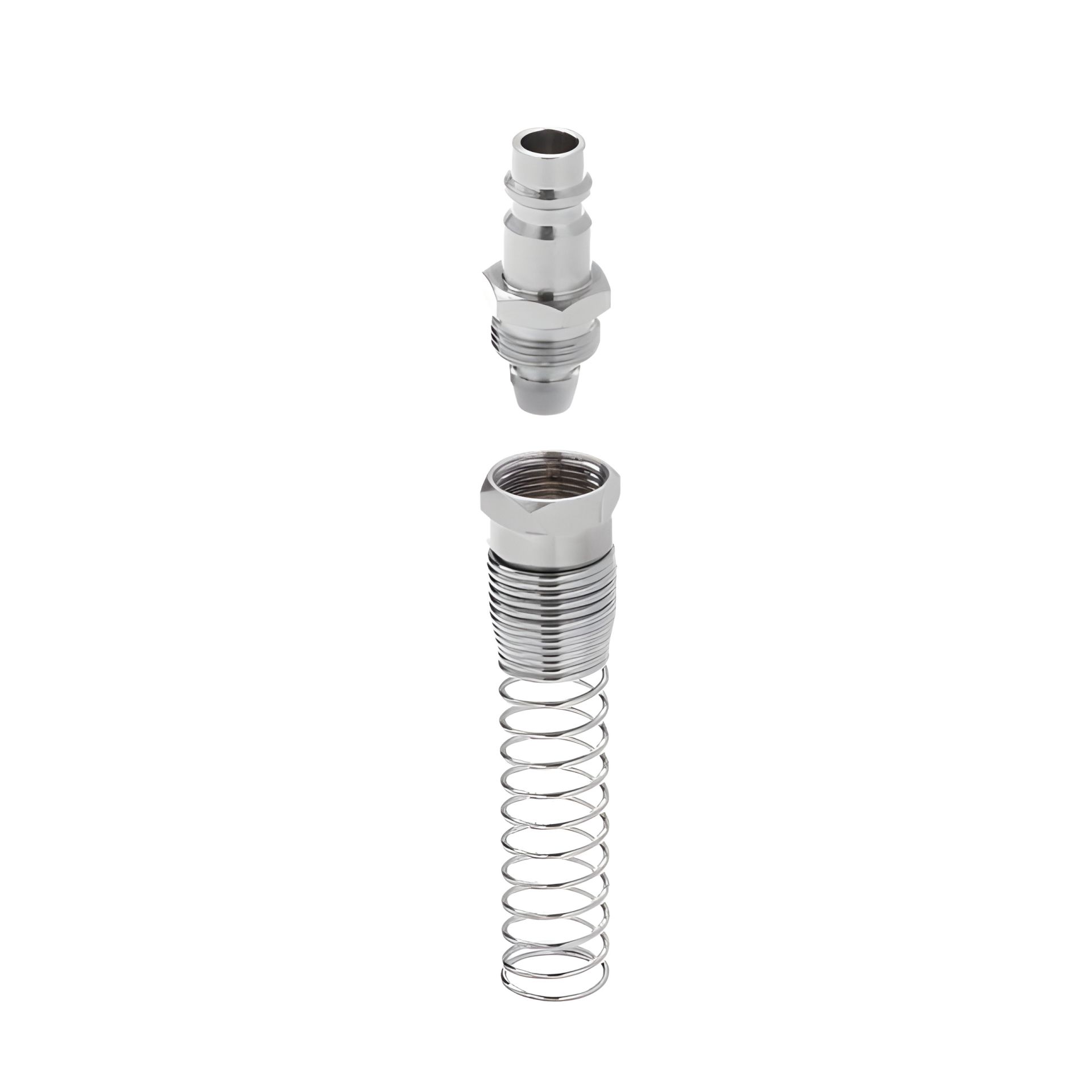 Штирьова частина до швидкороз'ємного з'єднання з пружиною використовується для встановлення на спіральні і прямі повітряні шланги, щоб забезпечити швидке підключення пневмоінструменту до компресора або повітряної магістралі. Також їх використовують для ремонту шлангів з ушкодженнями і для заміни конекторів що вийшли з ладу.