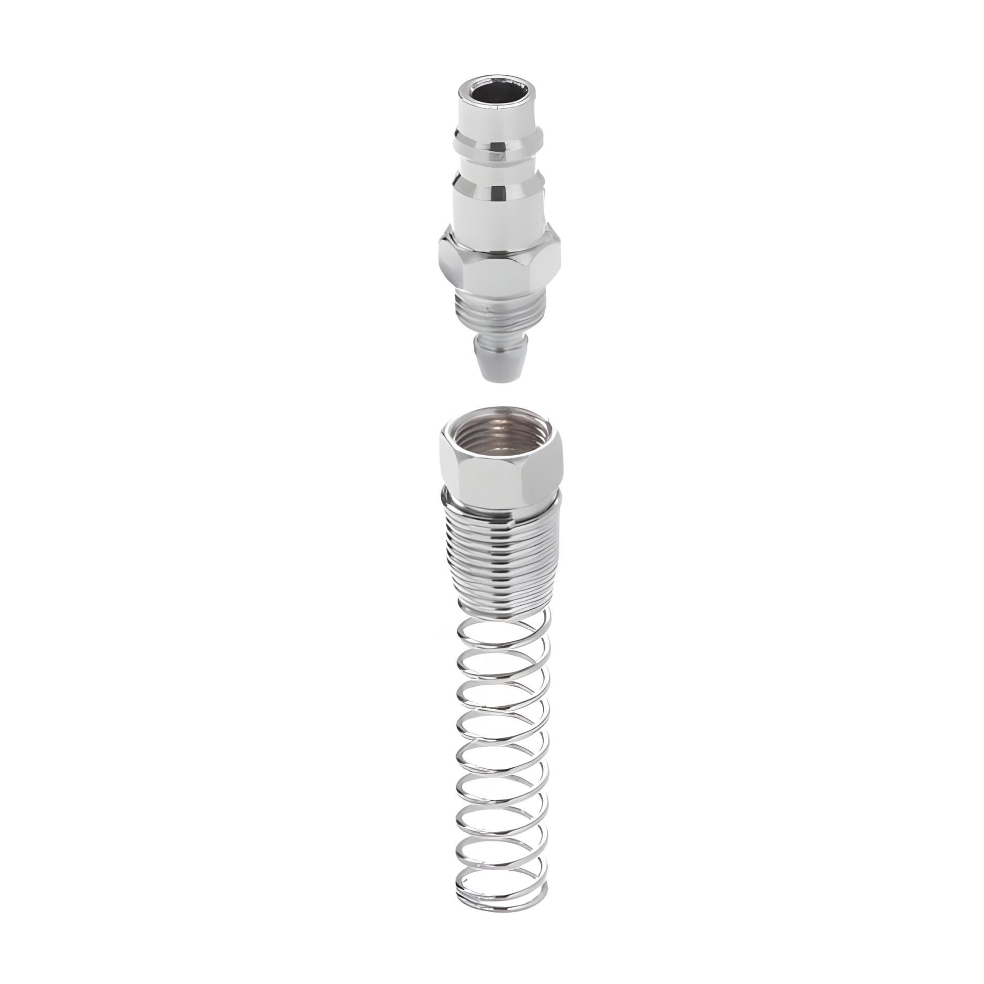 Штирьова частина до швидкороз'ємного з'єднання з пружиною використовується для встановлення на спіральні і прямі повітряні шланги щоб забезпечити швидке підключення пневмоінструменту до компресора або повітряної магістралі. Також їх використовують для ремонту шлангів з пошкодженнями і для заміни конекторів, що вийшли з ладу.