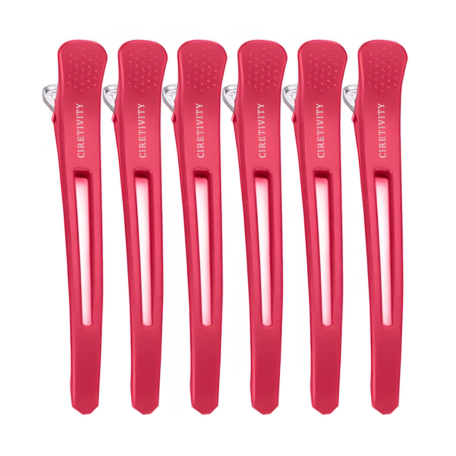 Перукарські кліпси-затискачі для волосся червоні "качка" плоскі 11 см, 6 шт CIRETIVITY