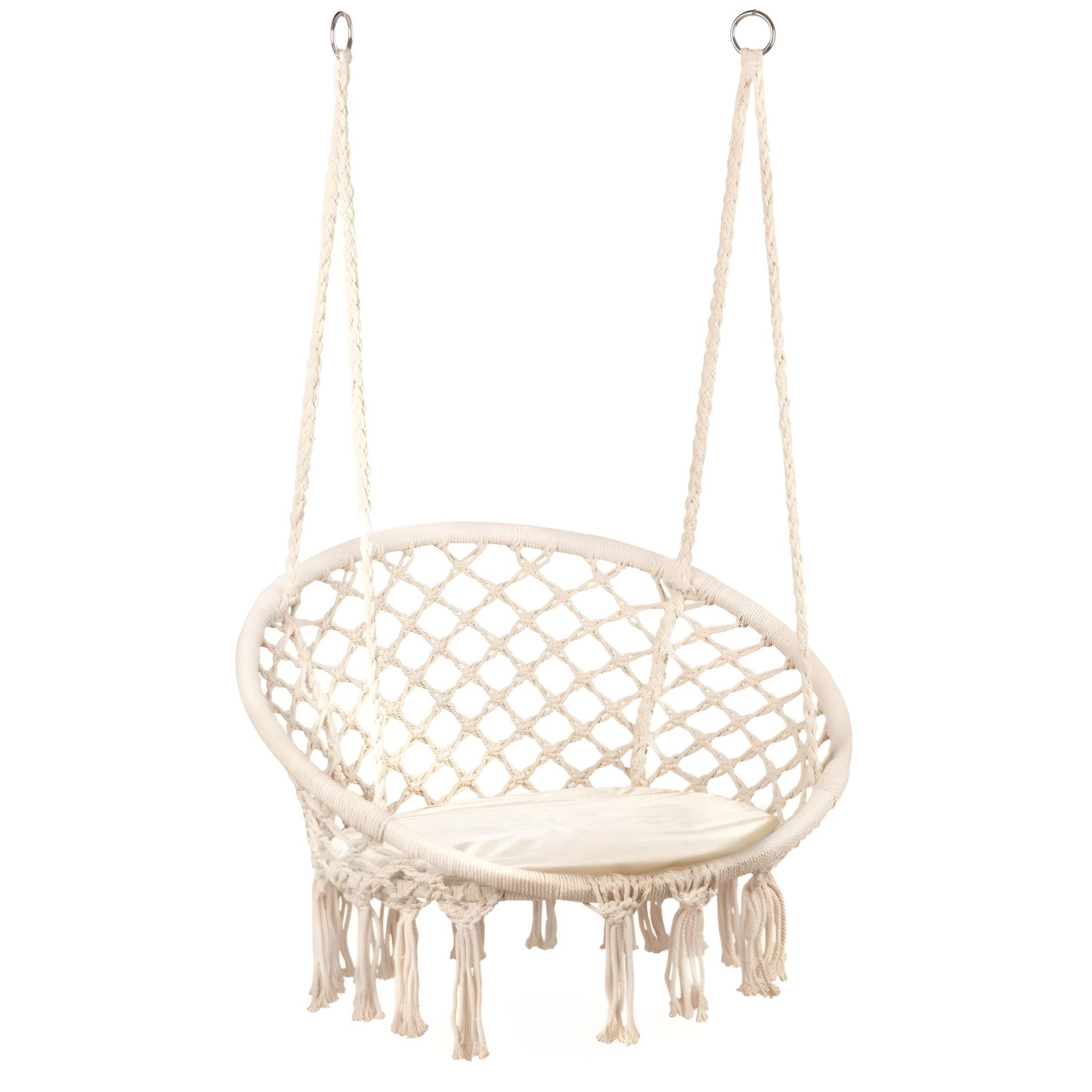 Стиль гойдалки дозволяє кріслом розгойдуватися вперед і назад. Щоб встановити його таким чином, помістіть два гачки/анкери в стелю або повісьте гойдалки на каркас. Подавайте собі класичні гойдалки у вигляді зручного крісла в стилі бохо.