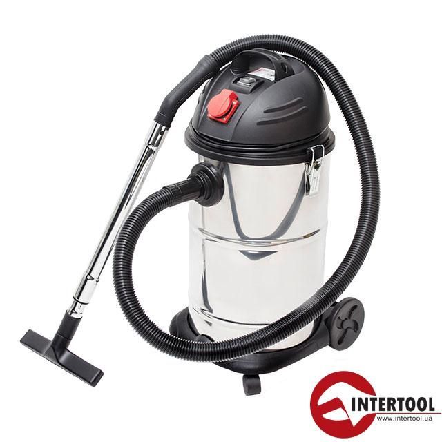 Будівельний пилосос, 1,4 кВт, >17 кПа, бак 30 л, нержавіюча сталь 410, розетка, HEPA фільтр, шланг 3 м INTERTOOL DT-1030