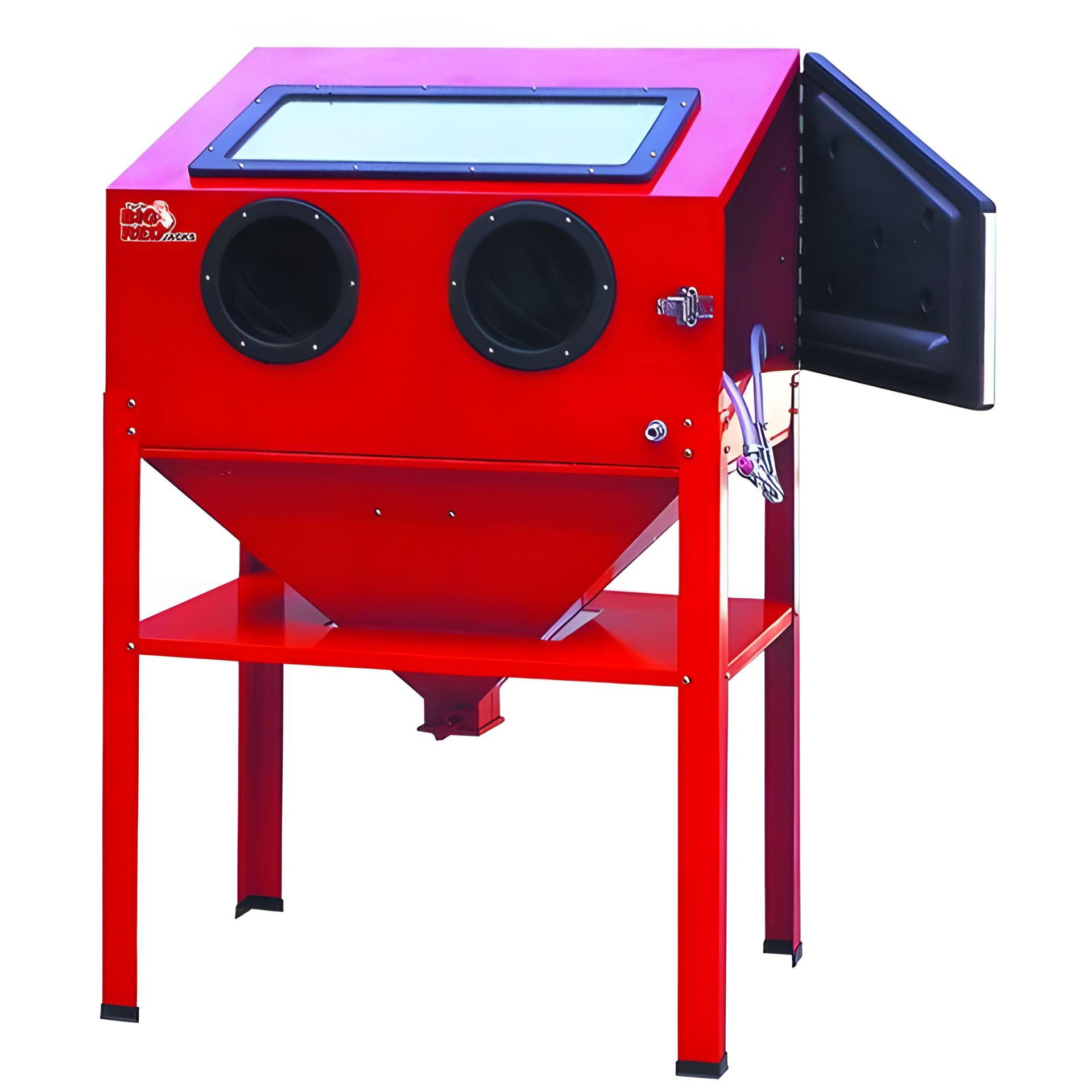Піскоструминна камера TORIN TRG4222 для обробки деталей, поверхонь різними абразивними матеріалами при знятті іржі, окалини, формувального грунту, матування, зміцнення поверхонь, декоративної обробки скла, а також для підготовки поверхонь перед фарбуванням. Піскоструминна обробка - холодна абразивна обробка поверхні металевих виробів шляхом пошкодження її поверхні піском або іншим абразивним порошком, що розпорошується потоком повітря. При піскоструминній обробці частинки піску прискорюються з піскоструминного апарату за допомогою енергії стисненого повітря.