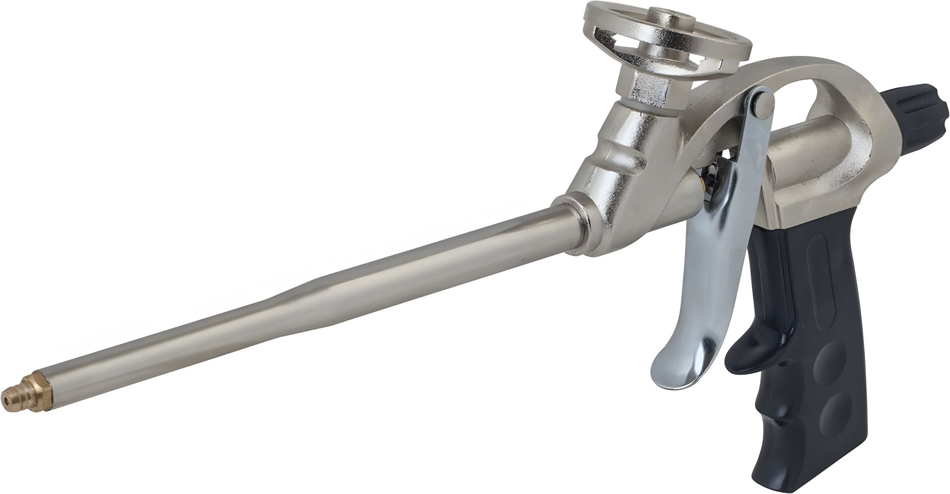 Застосовується для нанесення професійної монтажної піни під час встановлення віконних та дверних коробок, інших будівельних конструкцій. Подача піни регулюється за допомогою гвинта, розташованого над рукояткою пістолета (обертання за годинниковою стрілкою зменшує кількість піни, що подається). Тефлонове покриття перешкоджає прилипання піни.