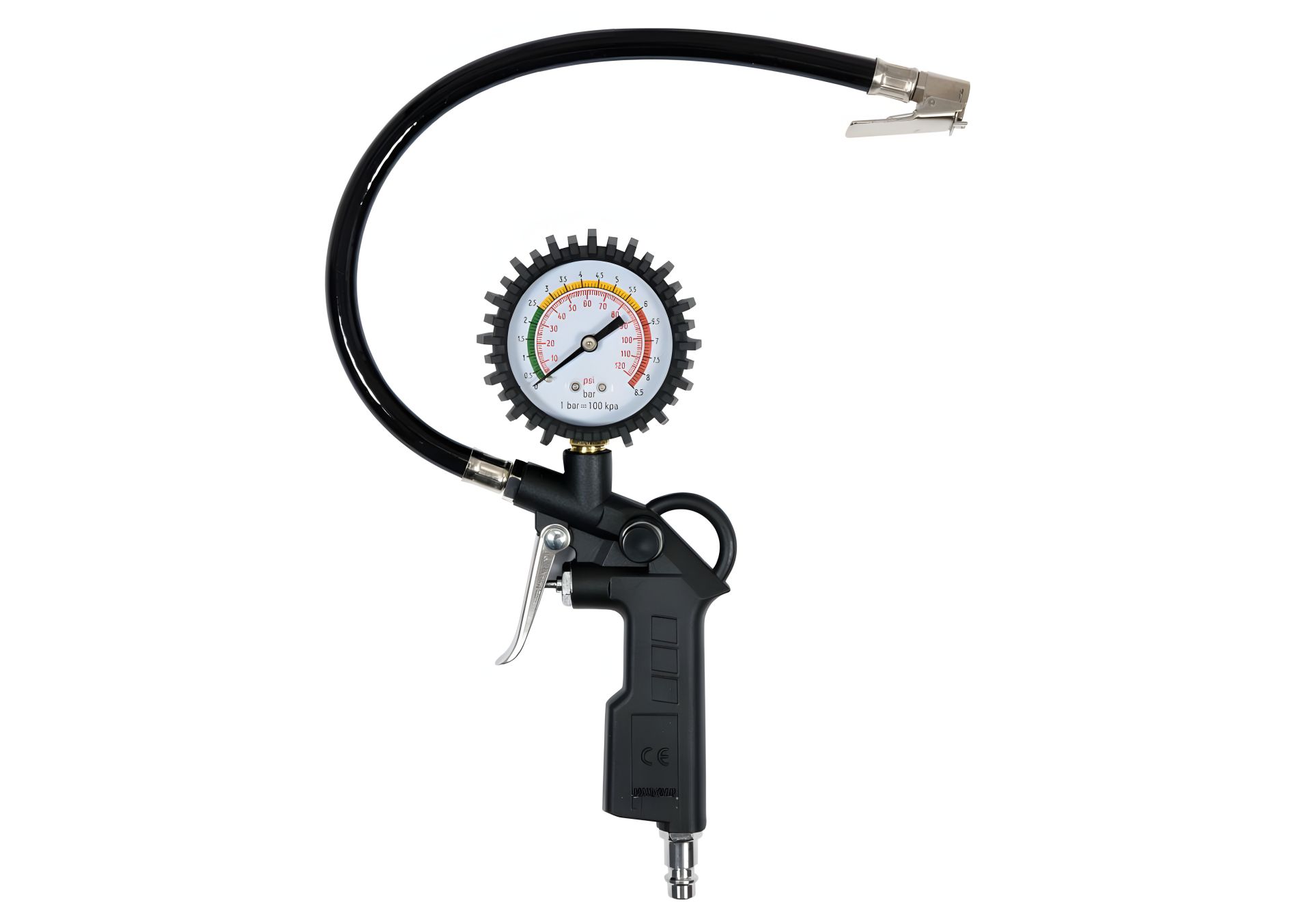 Пневматичний пістолет VOREL 81651 призначений для накачування коліс, а також дозволяє контролювати тиск при перекачуванні та надлишку повітря. Має величезний манометр, захищений від ударів.