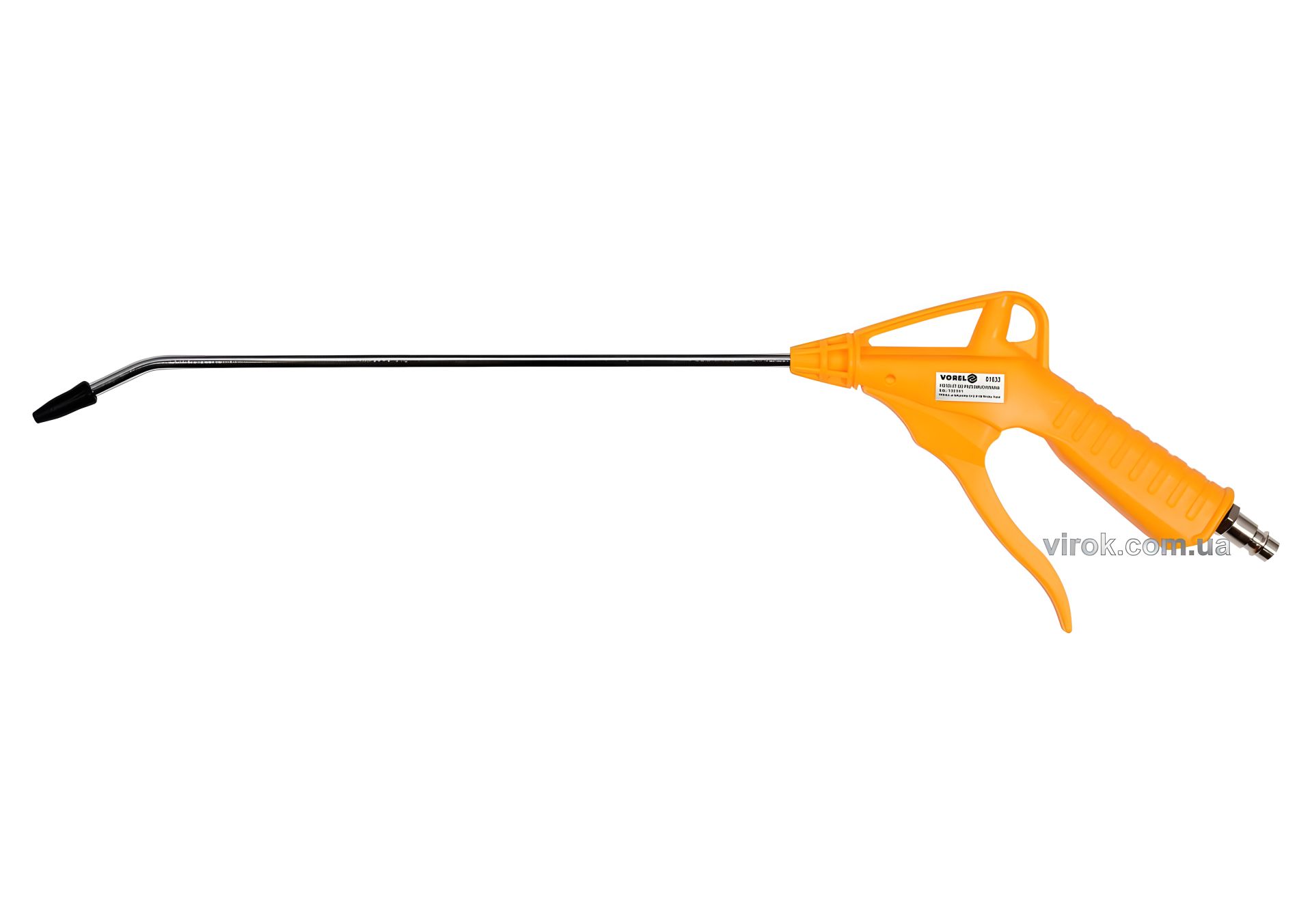 Пістолет VOREL 81633 з подовжувачем для продування стисненим повітрям. Ідеально підходить для видалення бруду та пилу з машин, пристроїв та двигунів, а також для використання в домашній майстерні та гаражі.