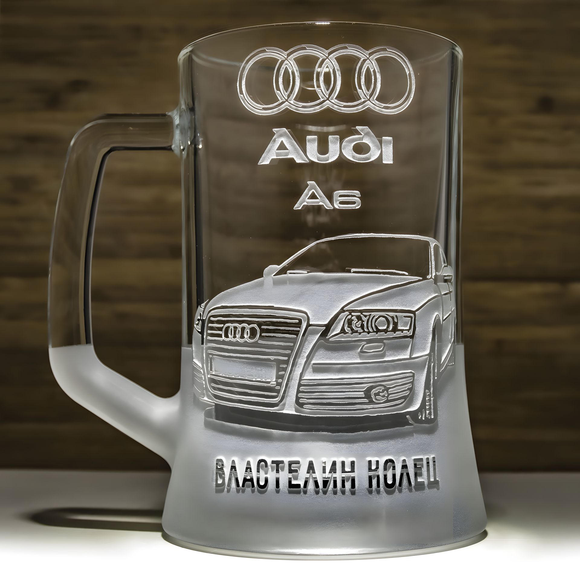 Келих пивний з гравіюванням автомобіля Audi A6 подарунок для автомобіліста (седан Ауді)