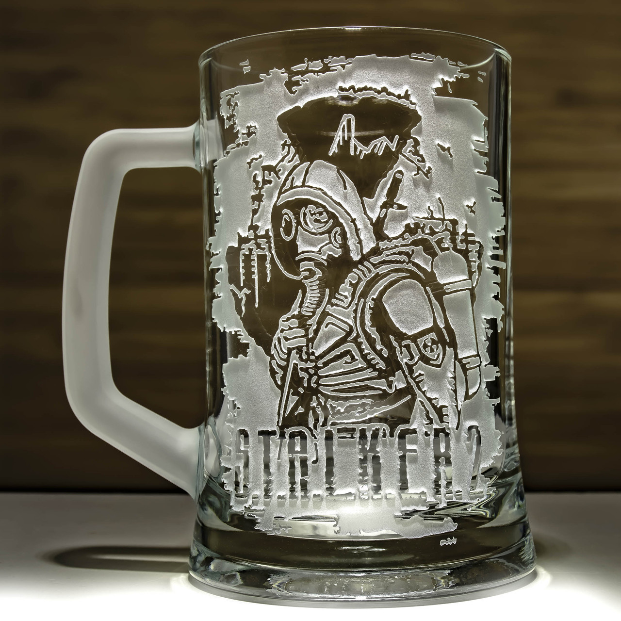 Бокал для пива з гравіюванням логотипу Сталкер 2 STALKER 2 - подарунок гравцю, геймеру