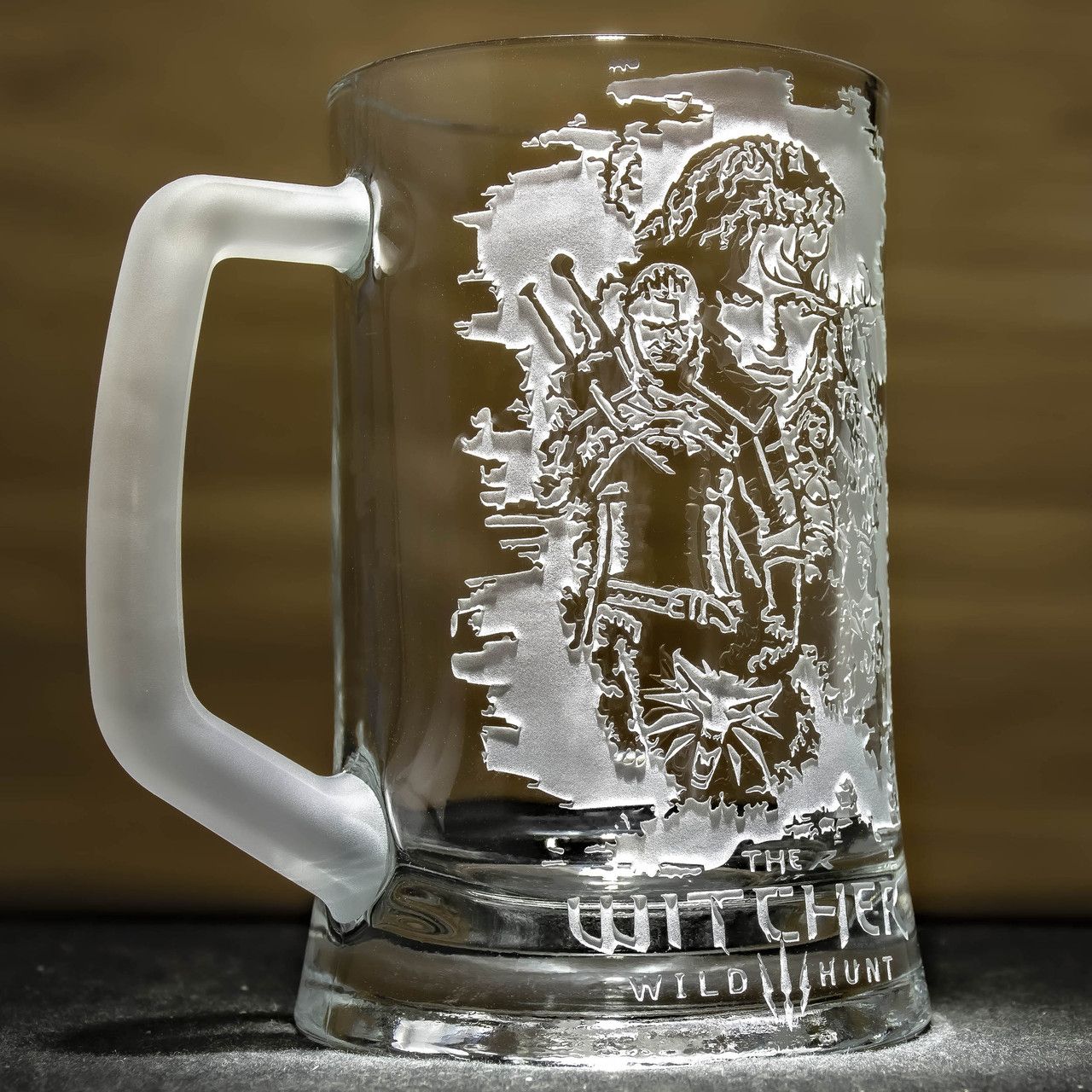 Бокал для пива з гравіюванням логотипу The Witcher Вітчер Відьмак дике полювання - подарунок гравцю, геймеру