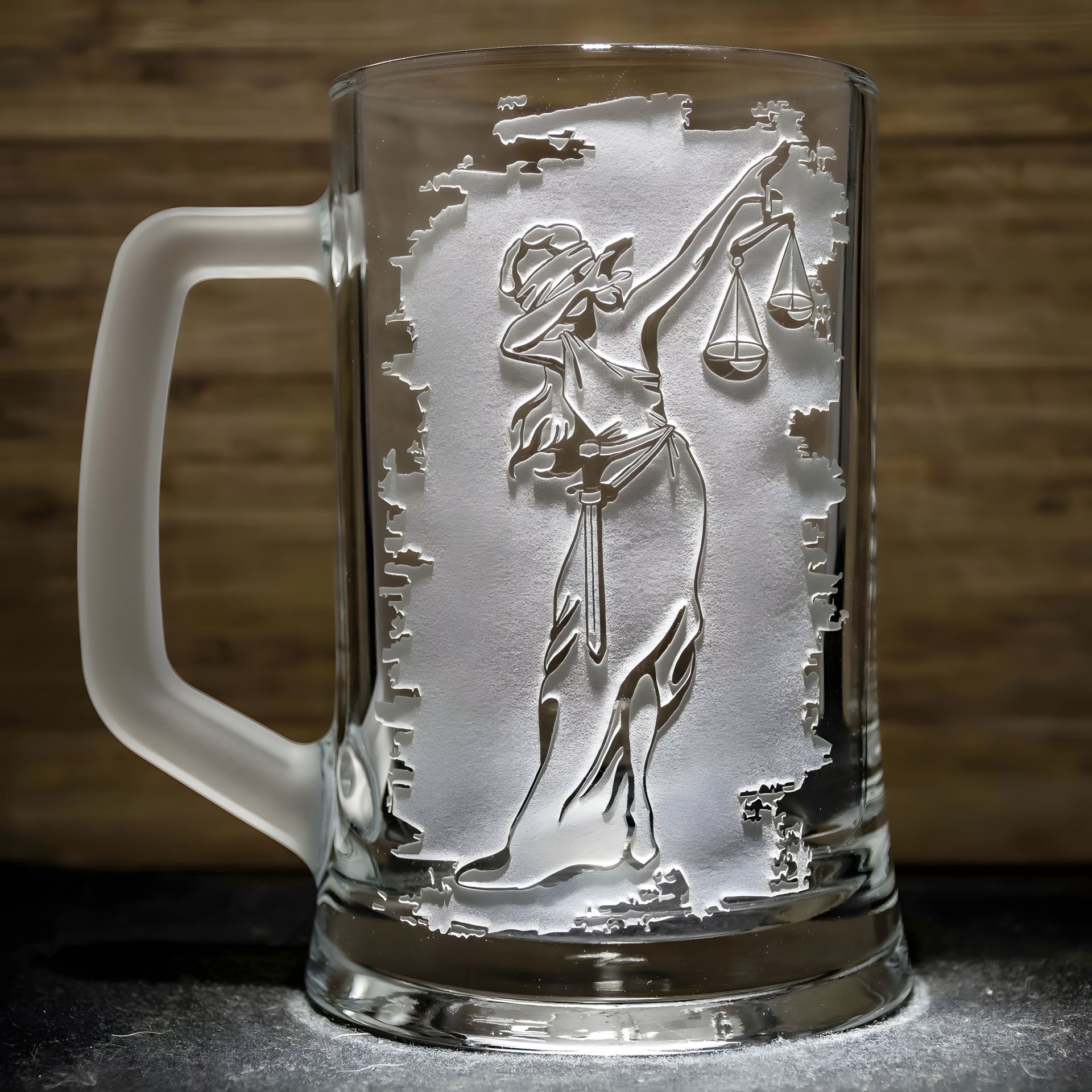 Подарунковий пивний келих з гравіюванням для юриста Феміда правосуддя