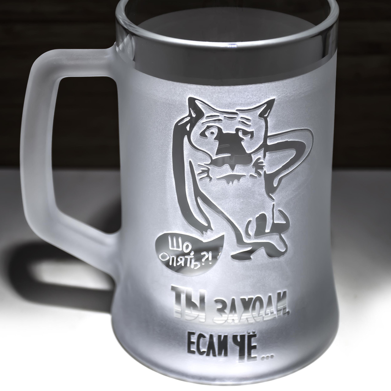 Бокал для пива з гравіюванням Вовка з мультфільму "Ты заходи, если че..." в подарунковій коробці