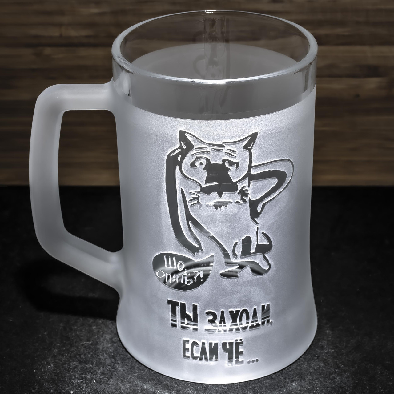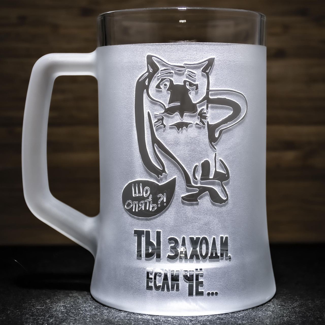 Пивний келих з гравіюванням Вовка з мультфільму "Ты заходи, если че..."