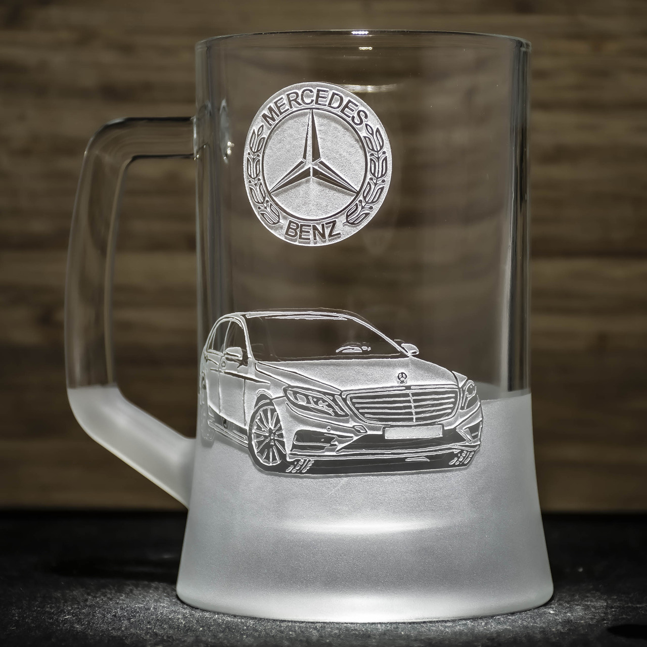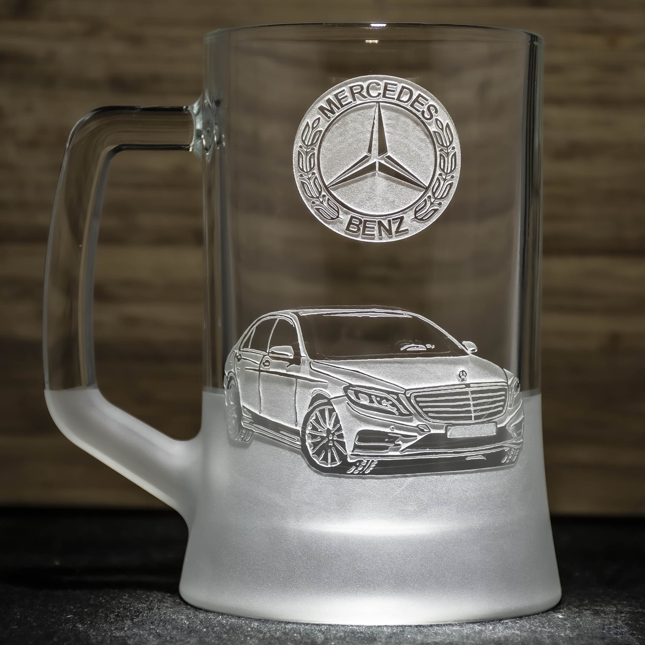 Пивний келих з гравіюванням автомобіля Merсedes S-class - подарунок для водія та автомобіліста