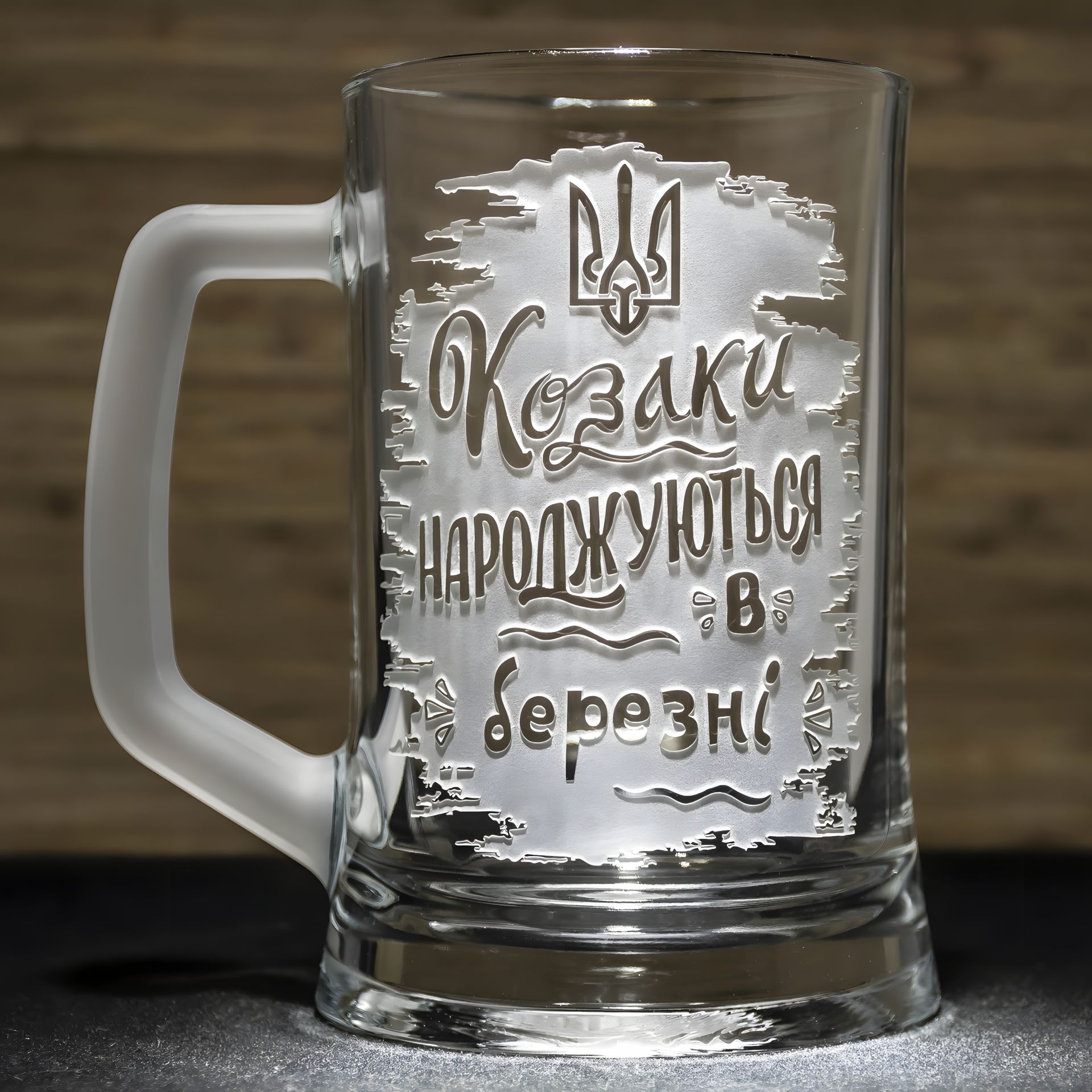 Келих пивний з гравіюванням напису Козаки народжуються в березні