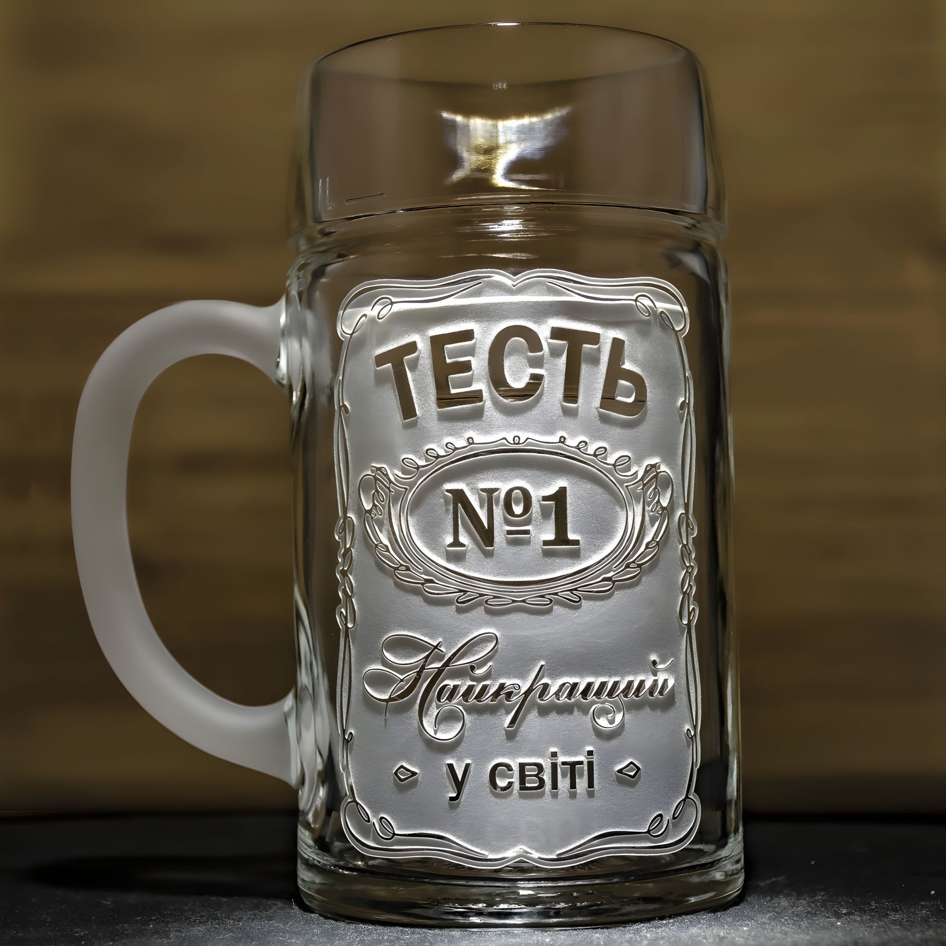 Літровий келих для пива з гравіюванням ТЕСТЬ №1 Найкращий у світі