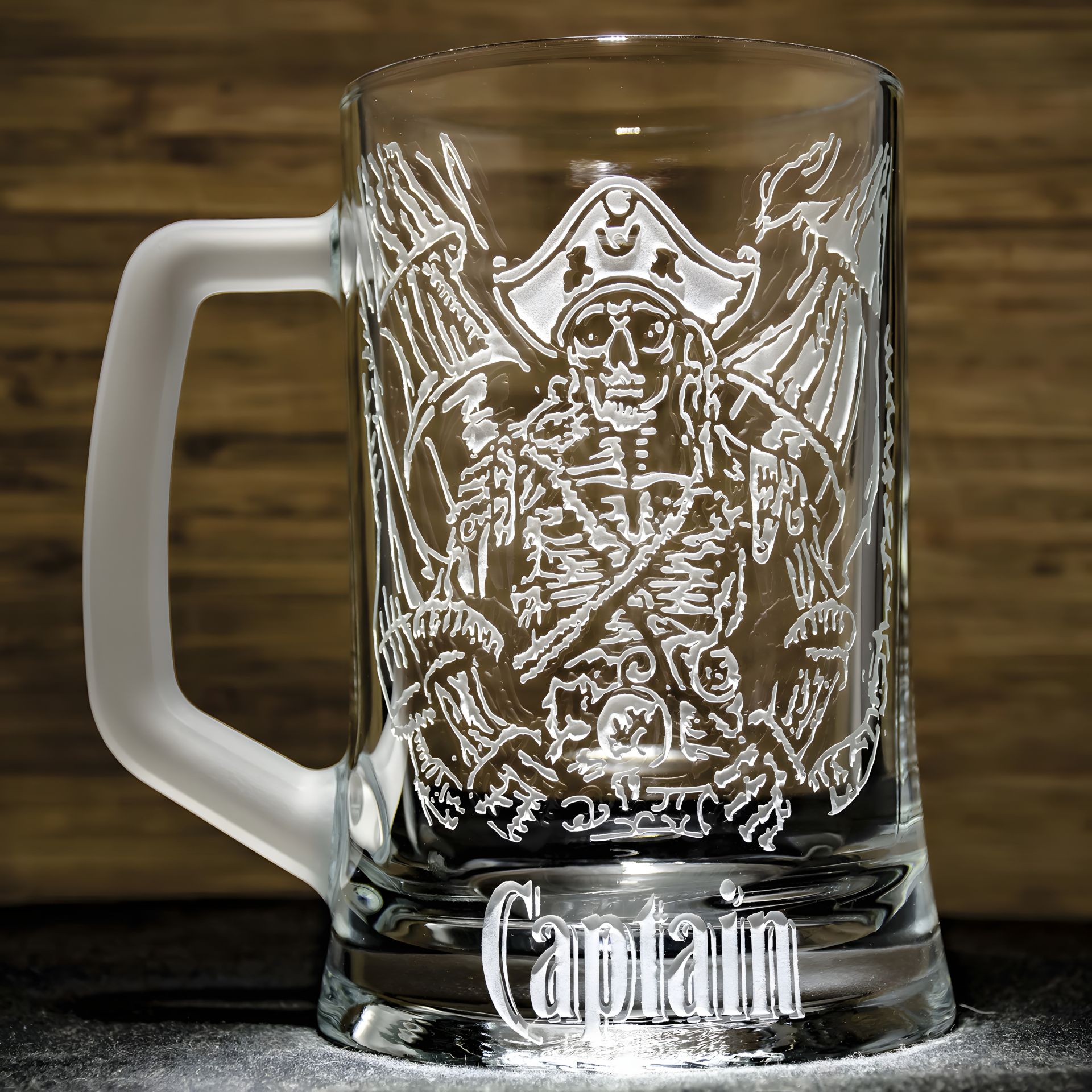 Пивний келих з гравіюванням Капітан - Скелет пірата з мечем і черепом в шляпі