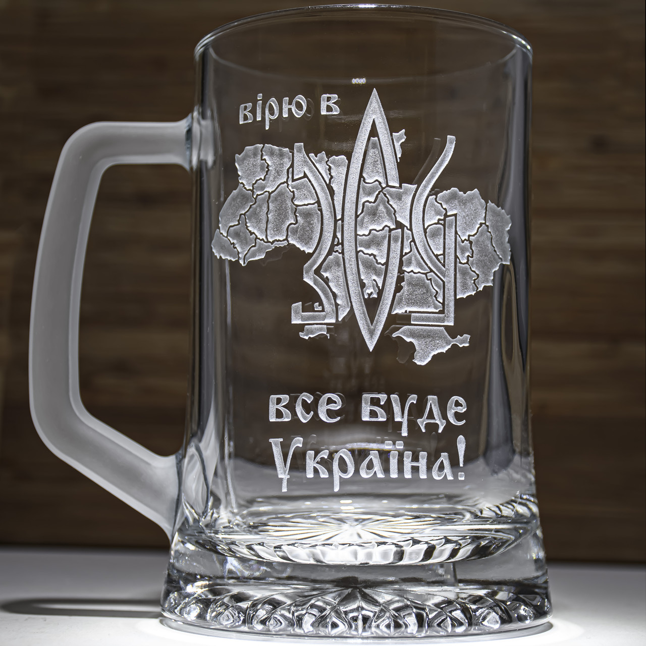 Пивний бокал з гравіюванням Вірю в ЗСУ Все Буде Україна!