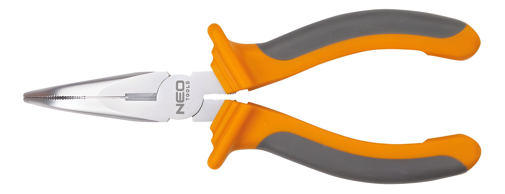 Плоскогубці подовжені вигнуті NEO, виконання відповідно до стандарту DIN 5745. Вигнуті під кутом 45° губки, піддані індукційному гартуванню (55-60 HRC), забезпечують міцне захоплення та ефективне різання. Двокомпонентні, ергономічні ручки підвищують комфорт експлуатації. Якість інструменту підтверджена сертифікатом TÜV та 25-річною гарантією виробника. Бренд NEO виправдовує очікування фахівців.