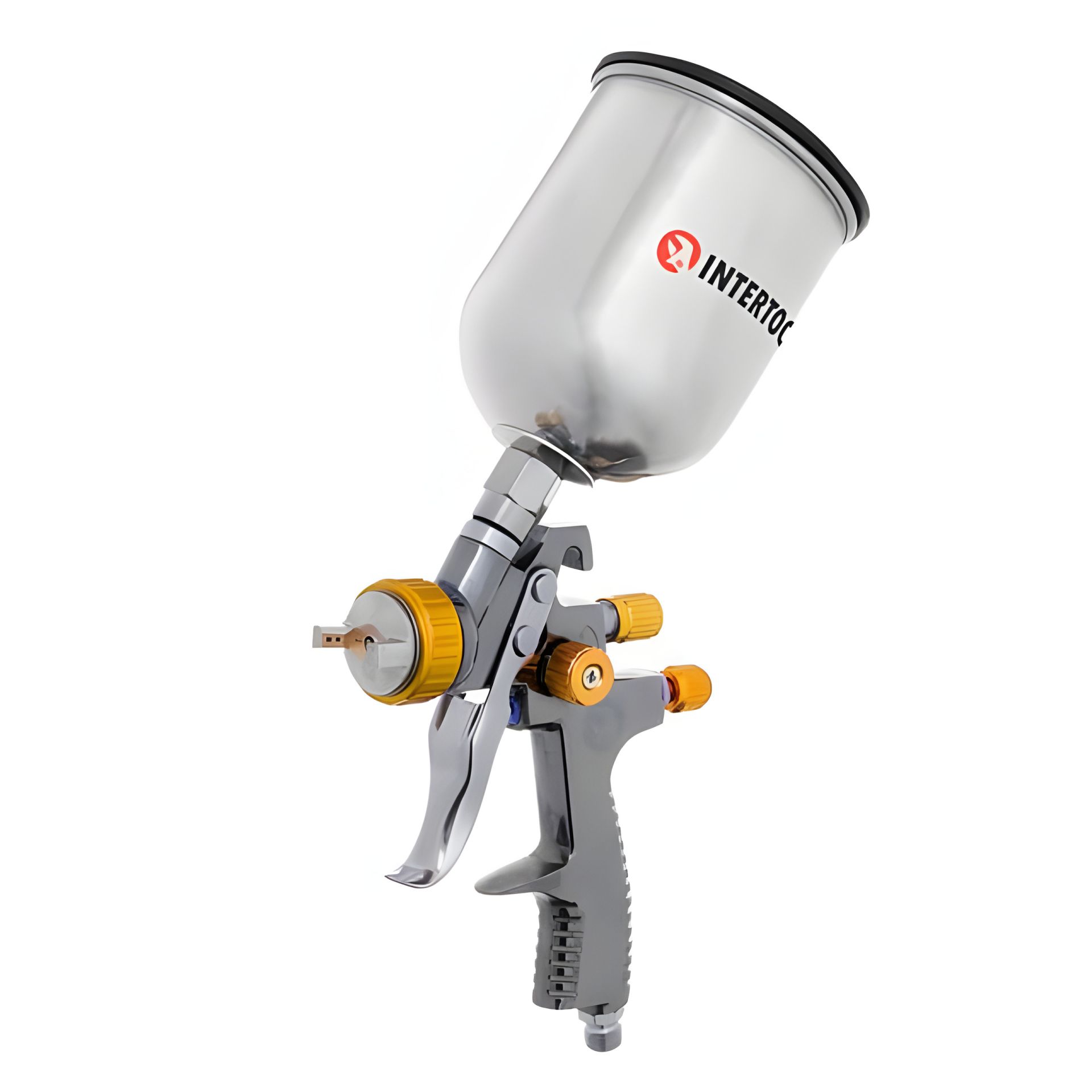 Пневматичний фарбопульт LVLP BRONZE, професійний, форсунка: 1,8 мм, верхній металевий бачок: 600 мл, 1,5 бар INTERTOOL PT-0135