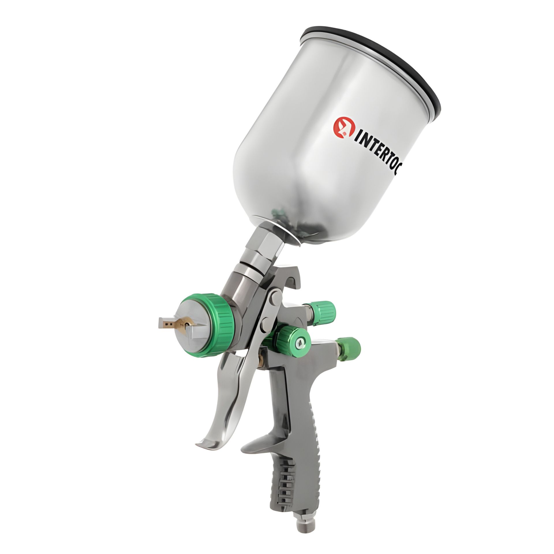 Пневматичний фарбопульт LVLP, професійний GREEN, форсунка 1,3 мм, верхній металевий бачок 600 мл, 1,5 бар INTERTOOL PT-0131