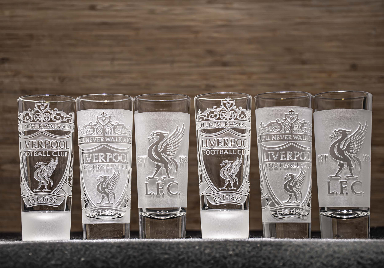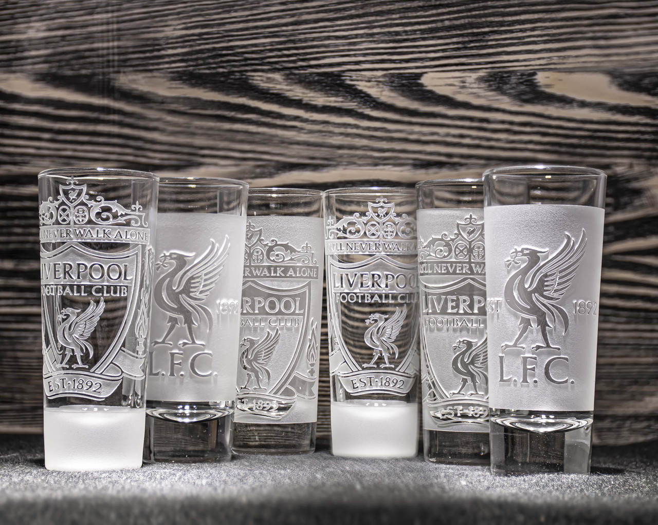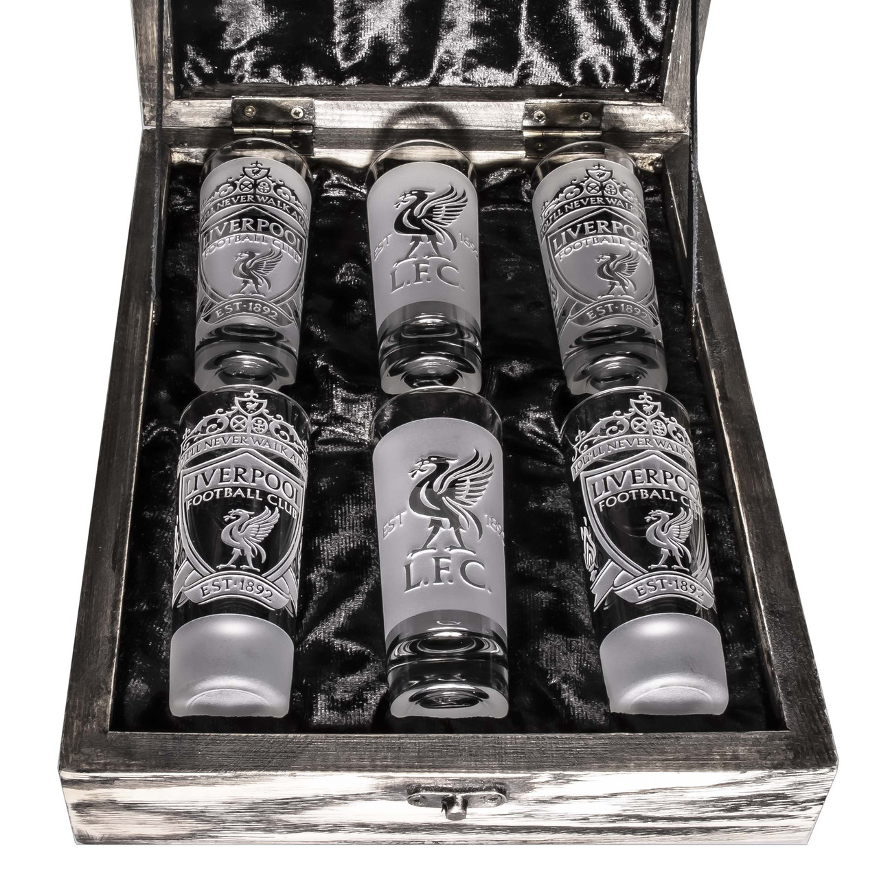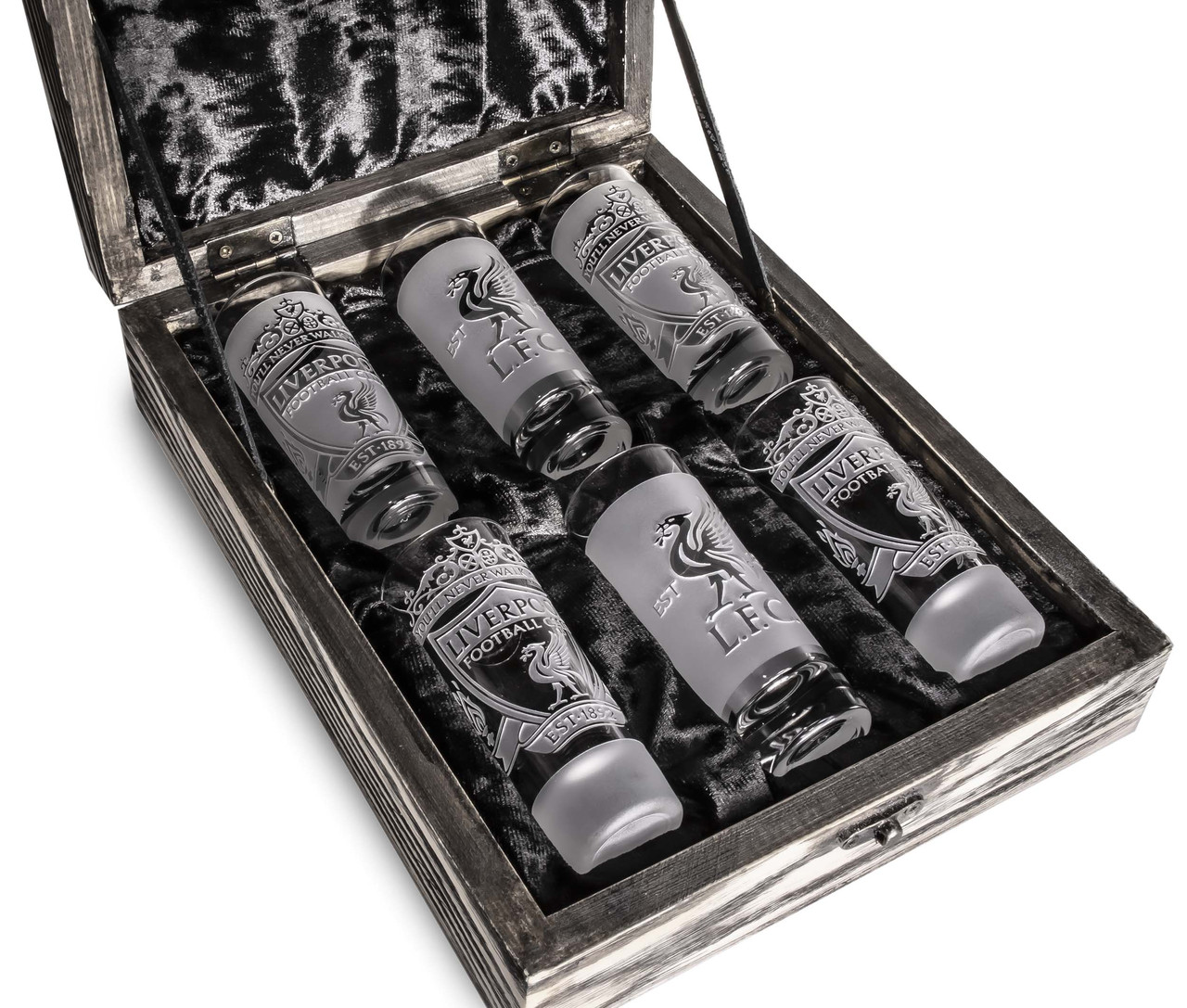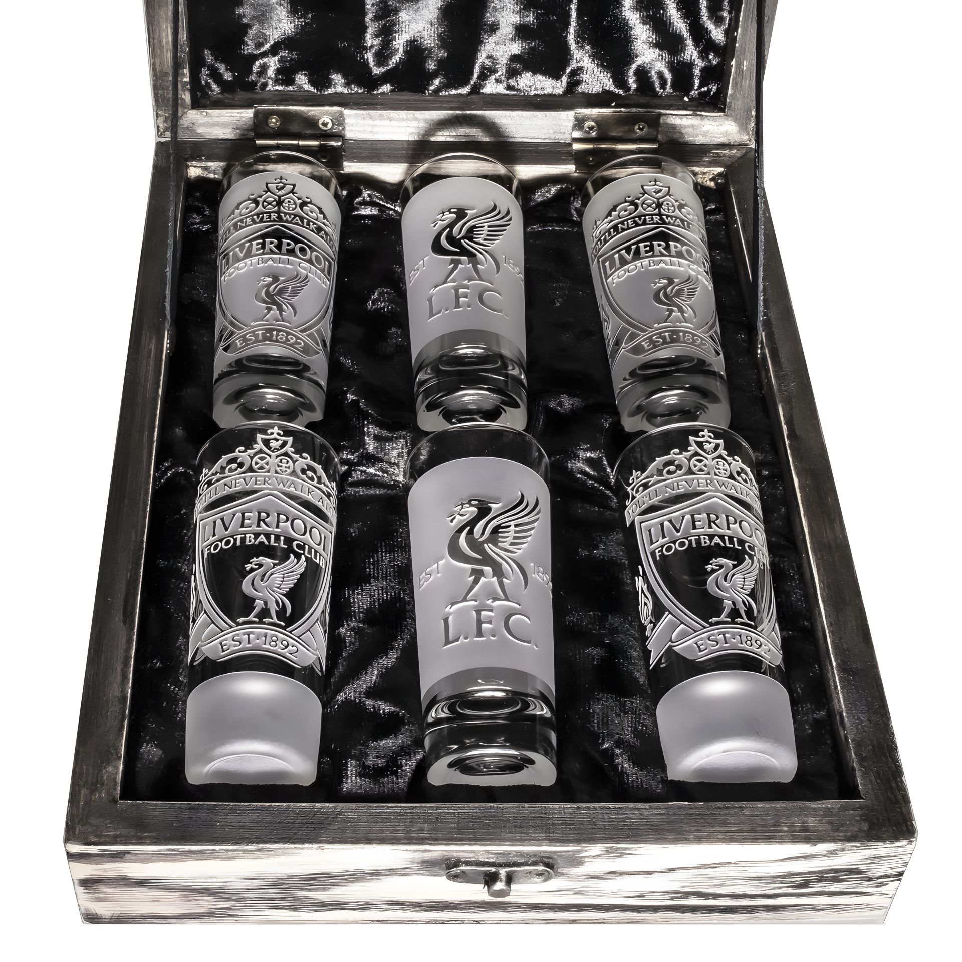 Сувенірні рюмки з гравіюванням ФК Ливерпуль FC Liverpool в дерев'яній подарунковій скриньці