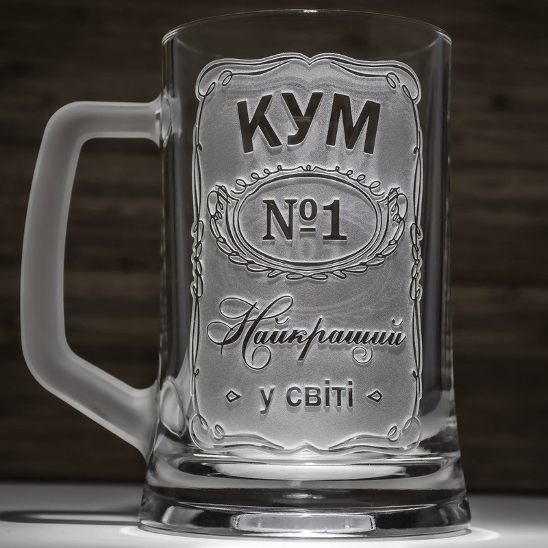 Сувенірний бокал для пива з ручним глибоким механічним гравіюванням напису Так виглядає найкращий в світі КУМ у подарунковій коробці