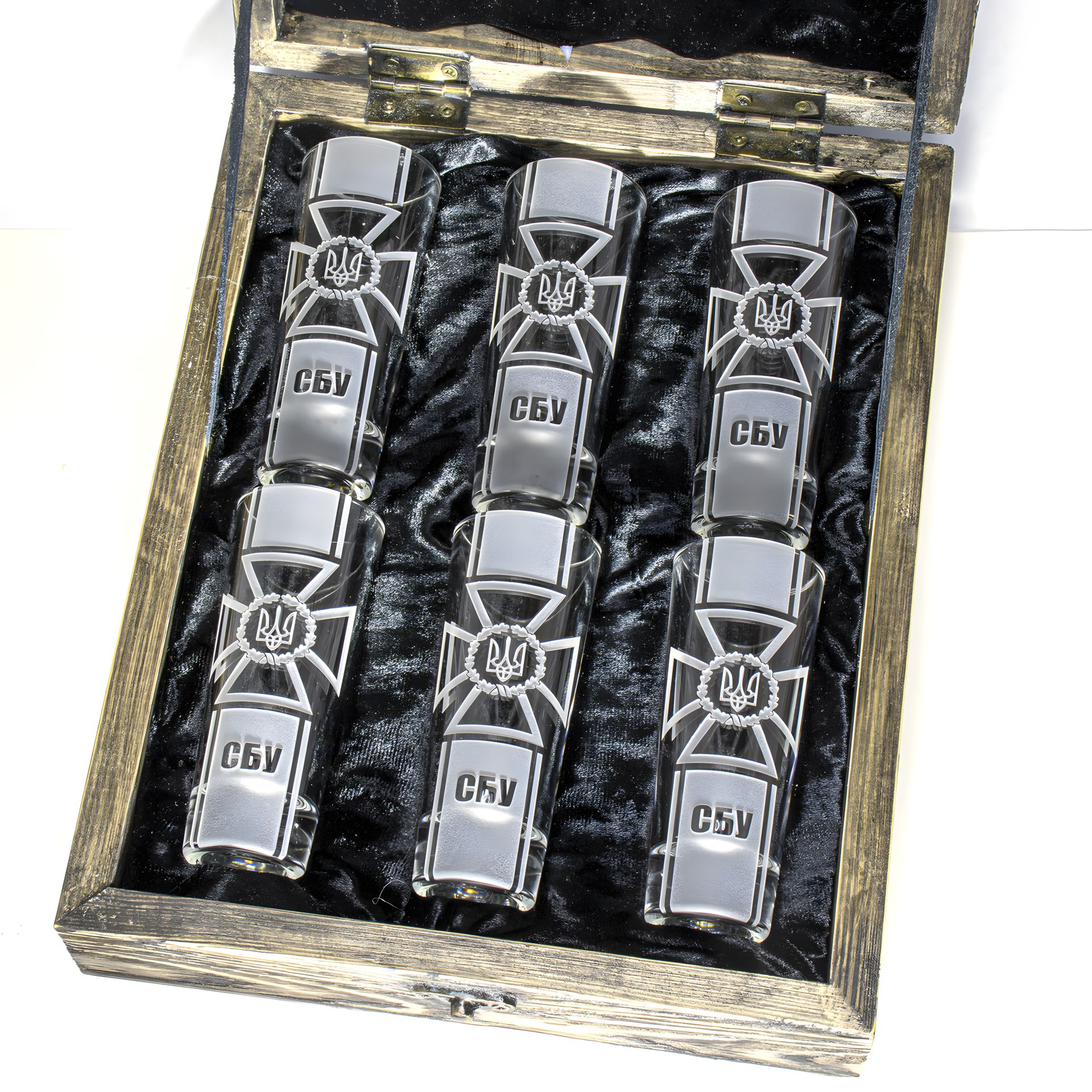Подарункові рюмки з гравіюванням СБУ у дерев'яній скриньці