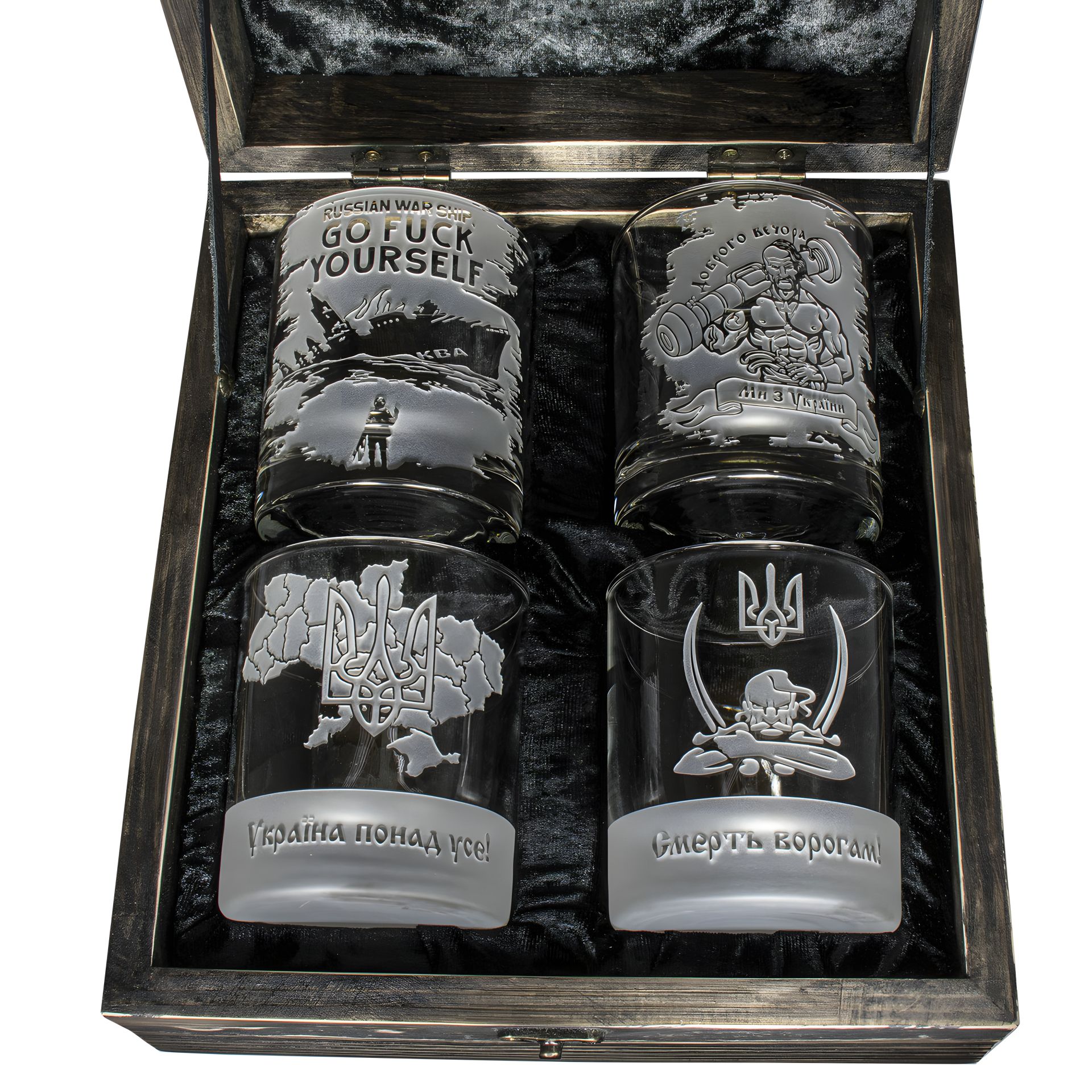 Якщо ви шукаєте не просто подарунок, а справжній символ патріотизму, то до Вашої уваги представляємо склянки для віскі, які уособлюють справжню віру в Україну та її перемогу!