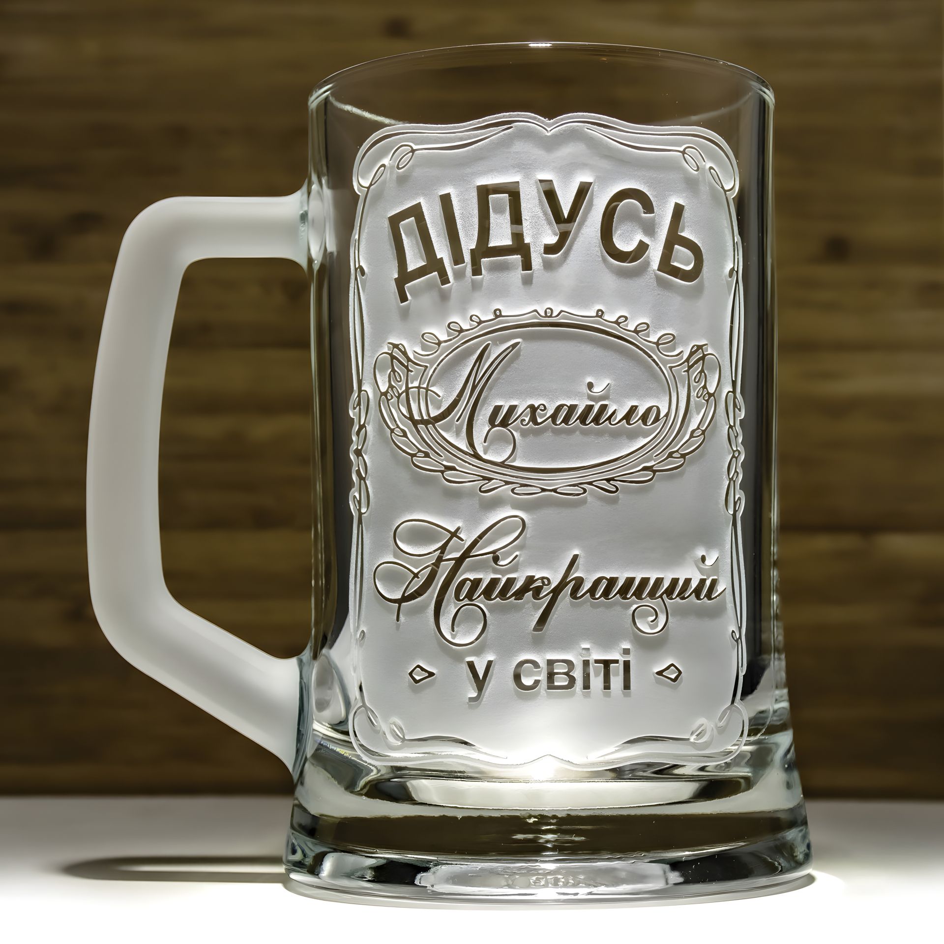 Іменний пивний бокал з гравіюванням "Дідусь найкращий у світі"