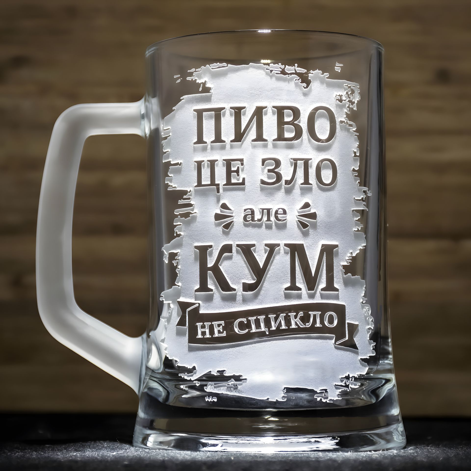 Подарунок для кума - Келих для пива з гравіюванням "Пиво це зло але кум не сцикло"