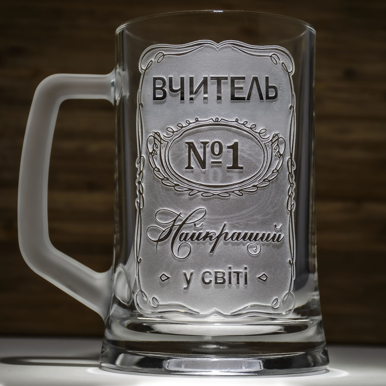Порадуйте свого вчителя! Замовте келих для пива з глибоким механічним гравіруванням напису “Учитель №1 найкращий у світі” прямо зараз!"