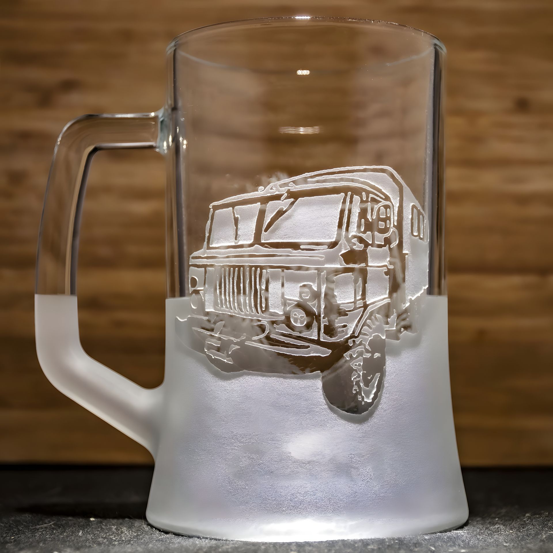 Cкляний кухоль для пива з ручним механічним гравіюванням вантажівка ГАЗ 66 у подарунковій коробці