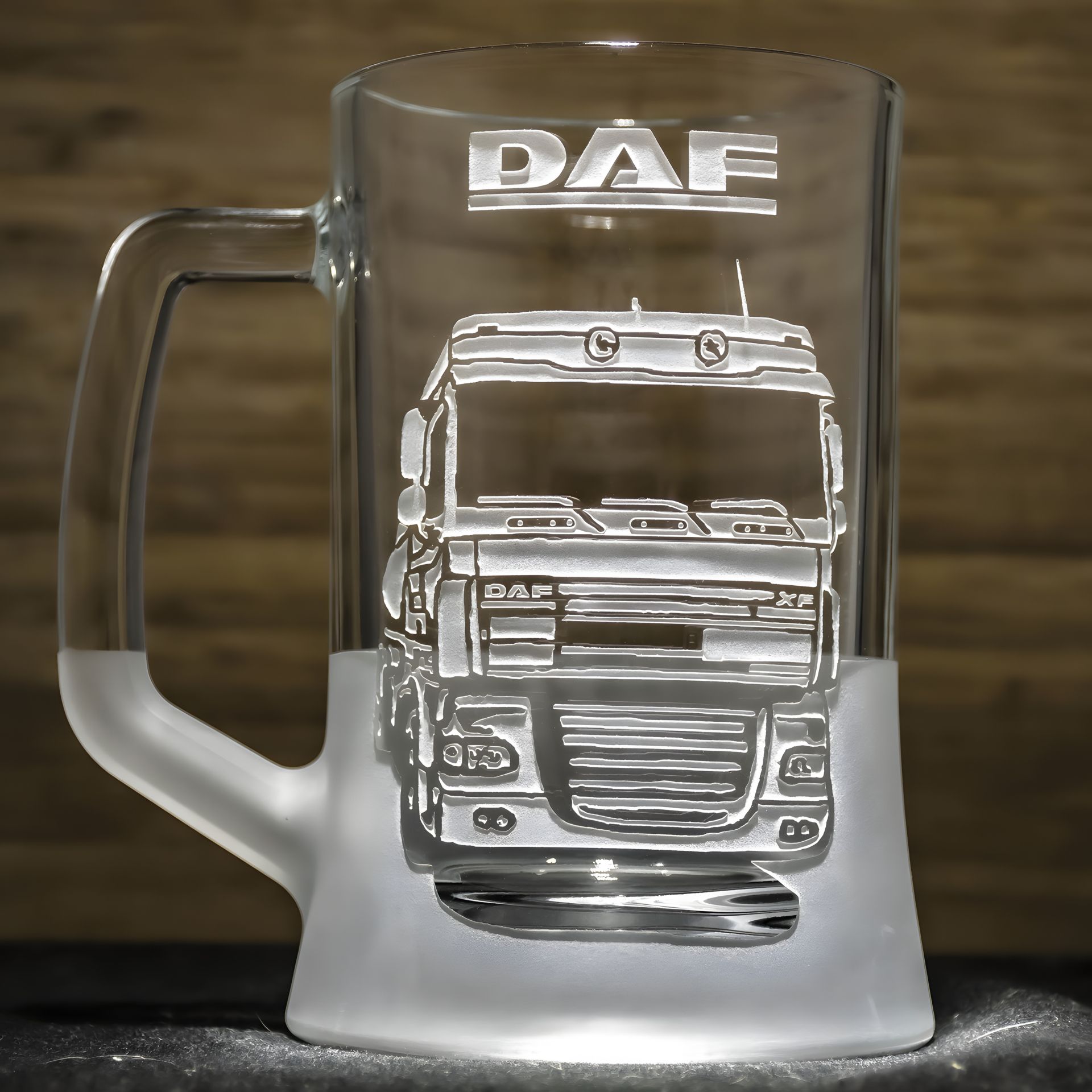 Cкляний кухоль для пива з ручним механічним гравіюванням вантажівка DAF у подарунковій коробці