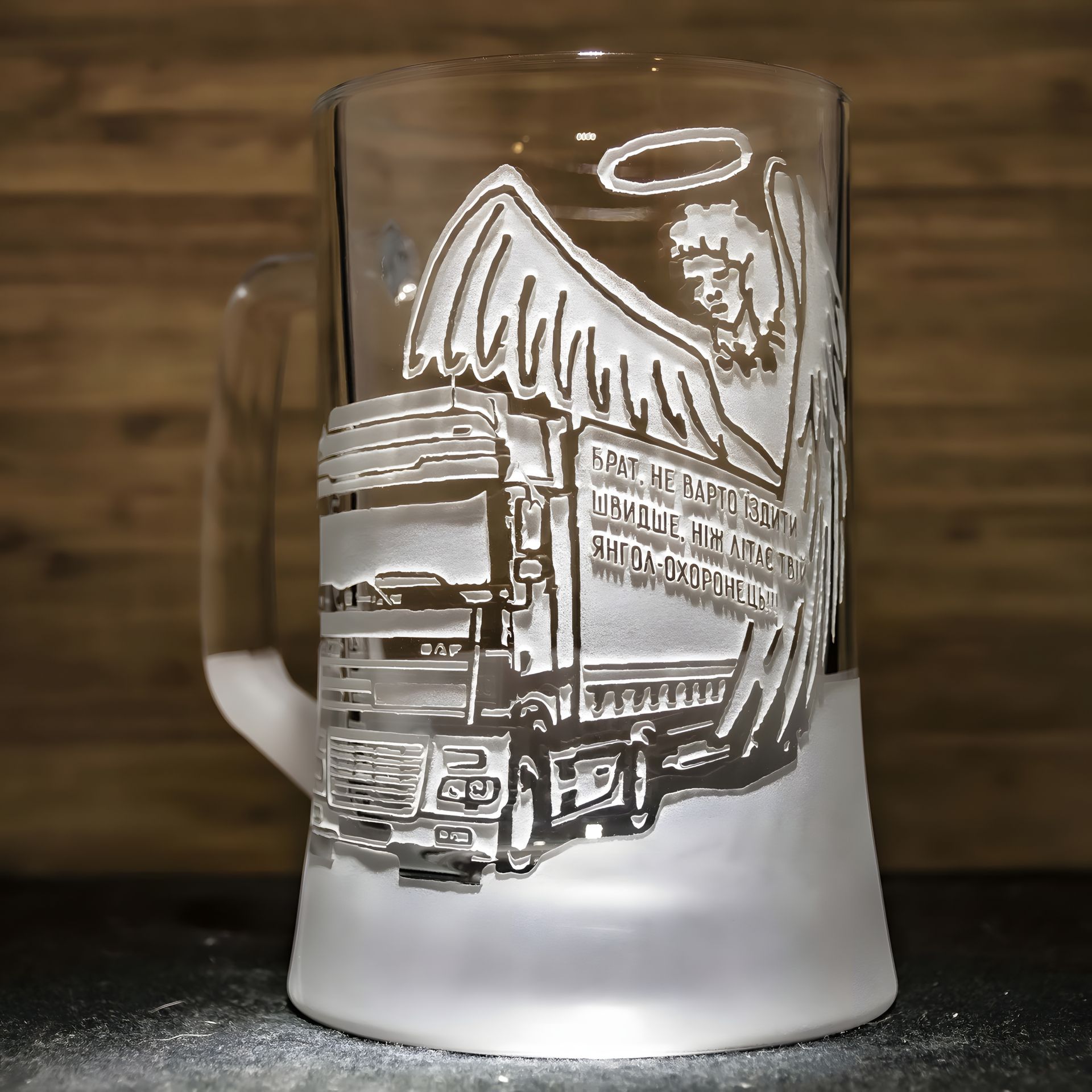 Подарунок далекобійнику: Бокал для пива з гравіюванням DAF Даф Ангел-охоронець