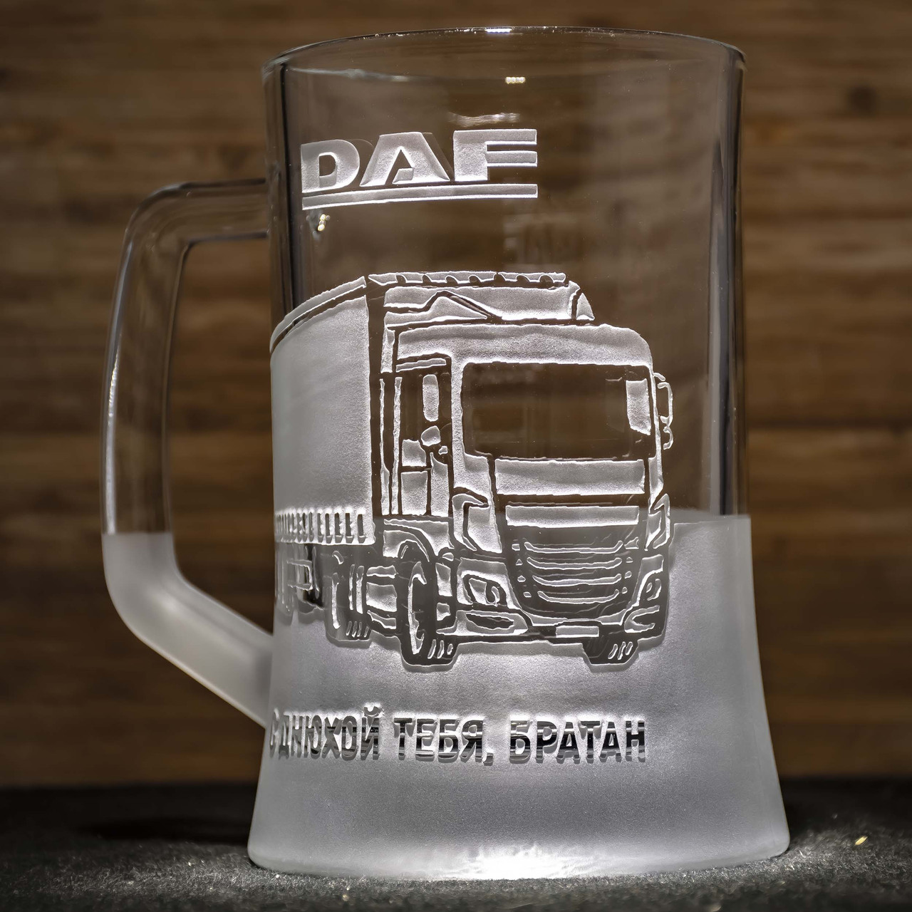 Подарунок далекобійнику - водію вантажівки - Бокал для пива з гравіюванням фура DAF з напівпричепом