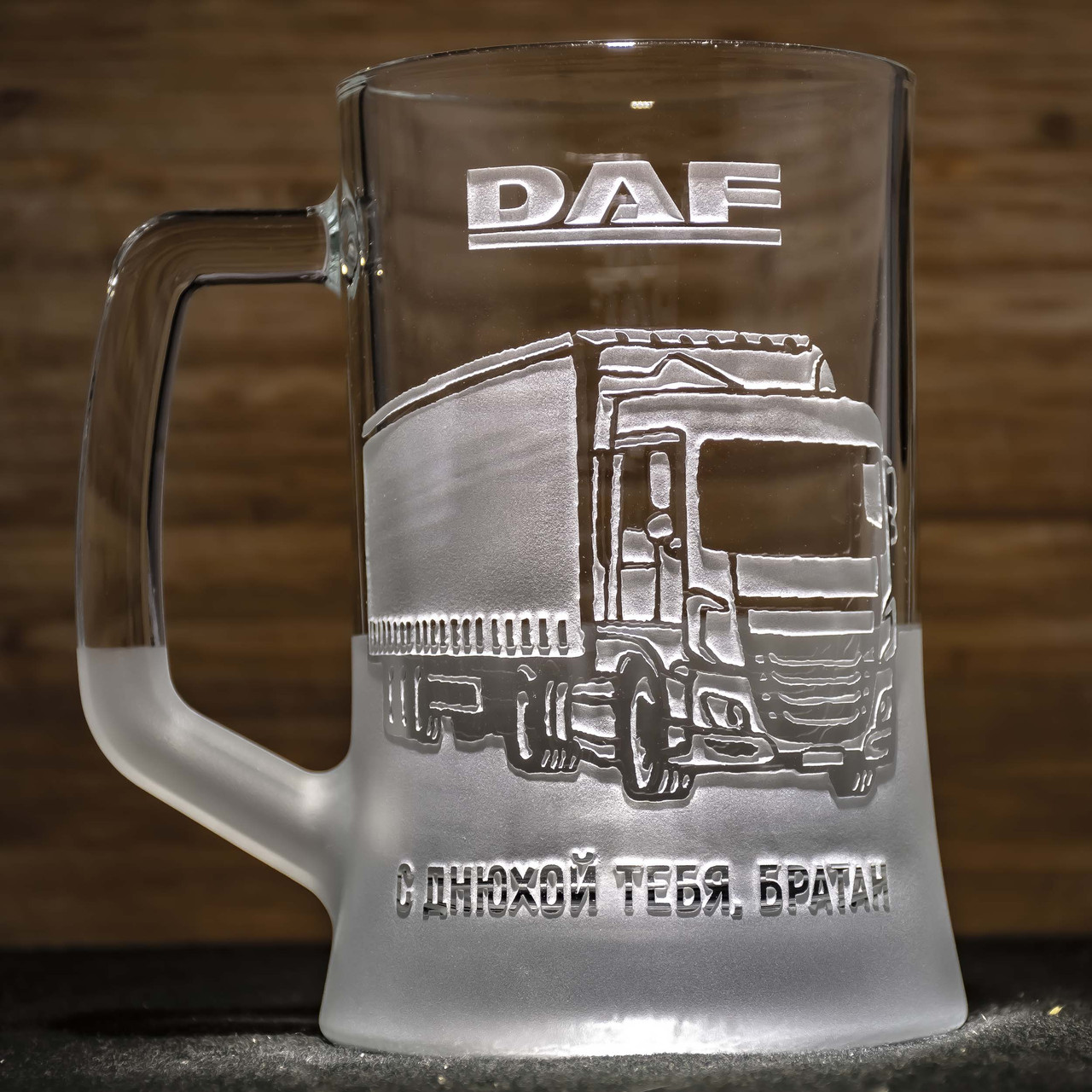 Cкляний кухоль для пива з ручним механічним гравіюванням DAF фура з напівпричепом у подарунковій коробці