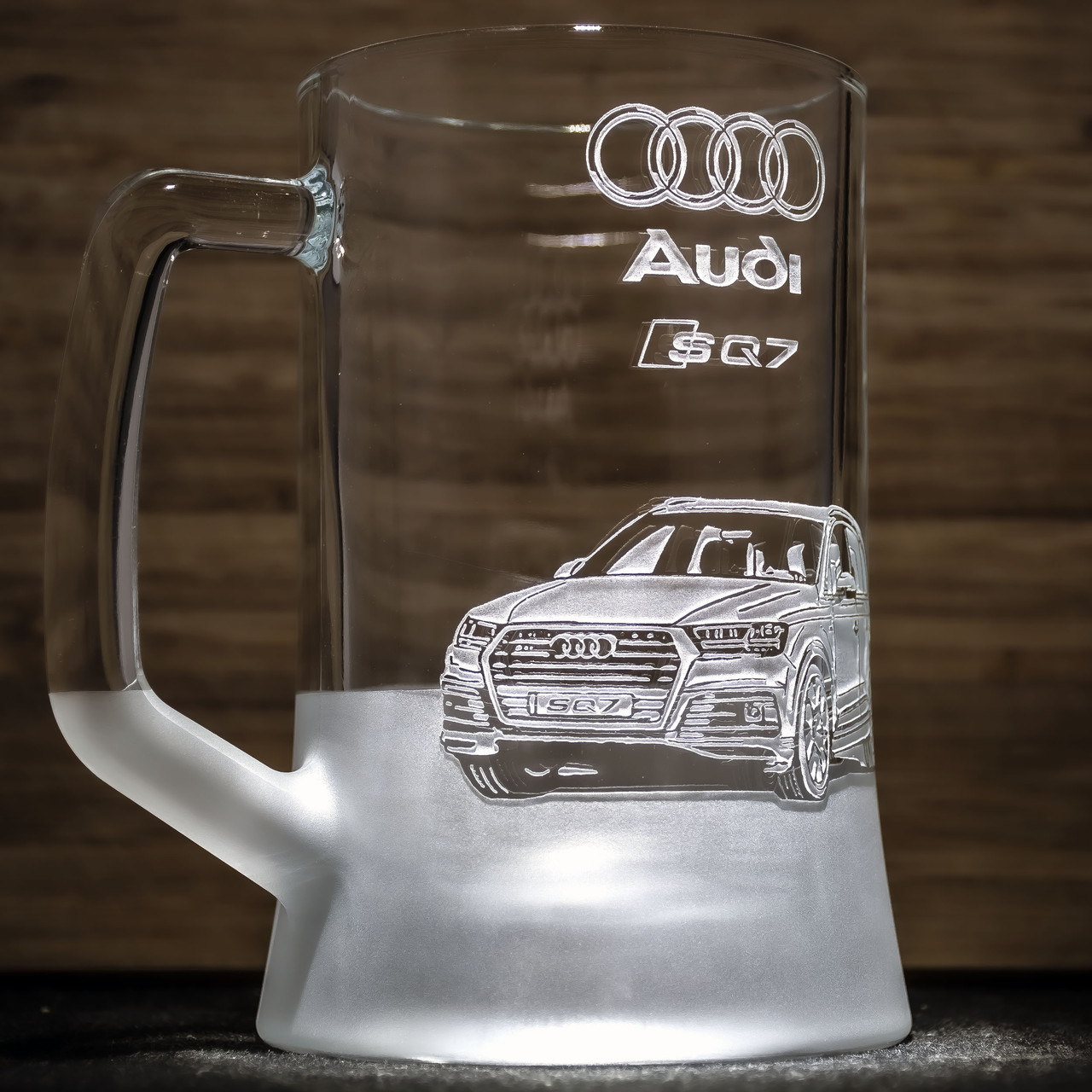 Подарунок водію - Бокал для пива з гравіюванням автомобіля AUDI SQ7 2022