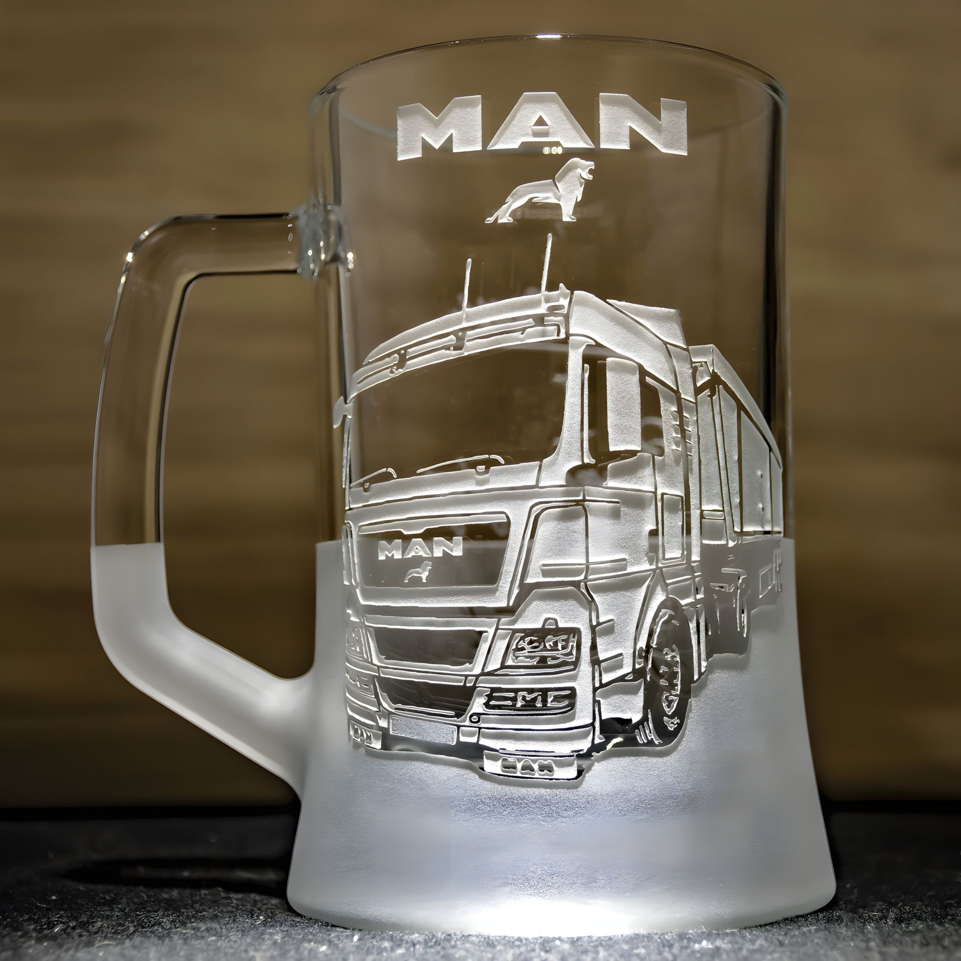 Cкляний кухоль для пива з ручним механічним гравіюванням фото MAN TGX фура з напівпричепом у подарунковій коробці