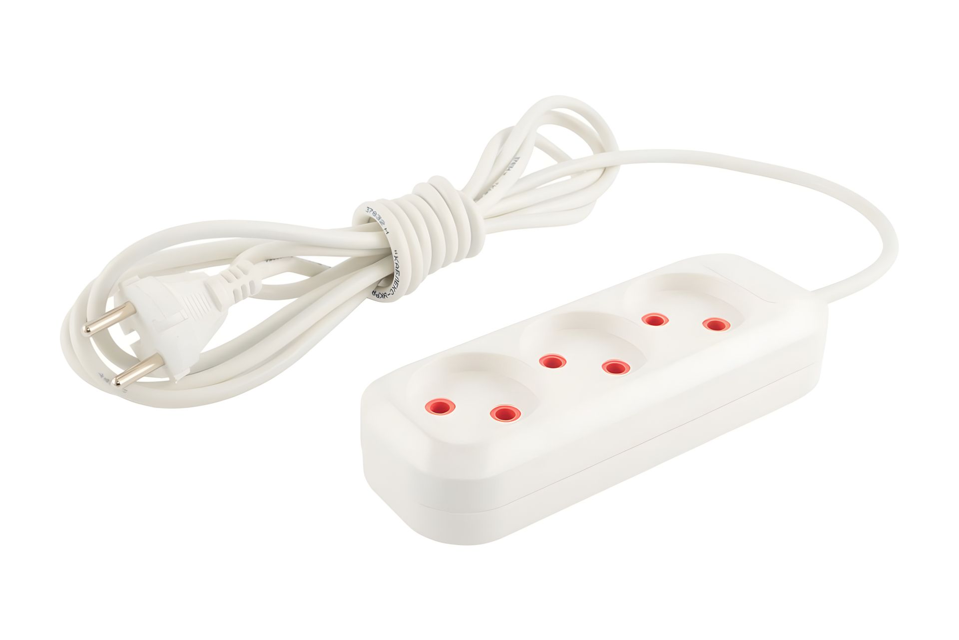 Подовжувач на 3 розетки, 3 м, 2х1.0 мм², 10 А, 250 V MASTERTOOL 94-0055