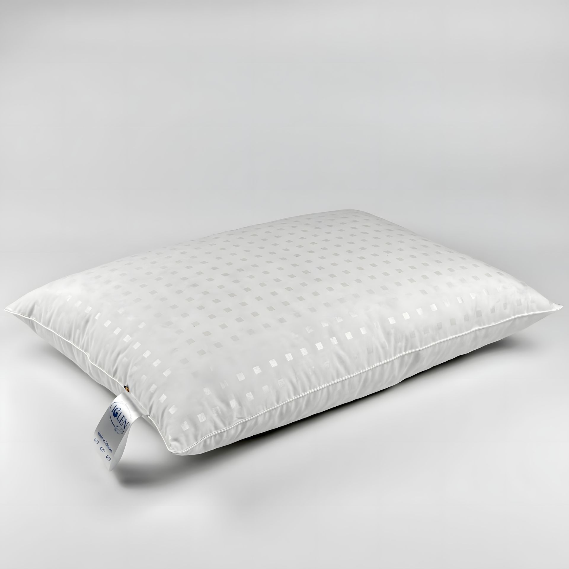 Головною перевагою даної подушки є її унікальне поєднання 30% натурального гусячого пуху та 70% дрібного пера вищої категорії. Гусячий пух славиться своєю неймовірною м'якістю та теплотою, а перо володіє пружністю та здатністю добре тримати форму. Таке поєднання дарує подушці оптимальну м'якість, що ідеально підлаштовується під форму вашої голови і шиї, забезпечуючи максимальний комфорт і підтримку під час сну.