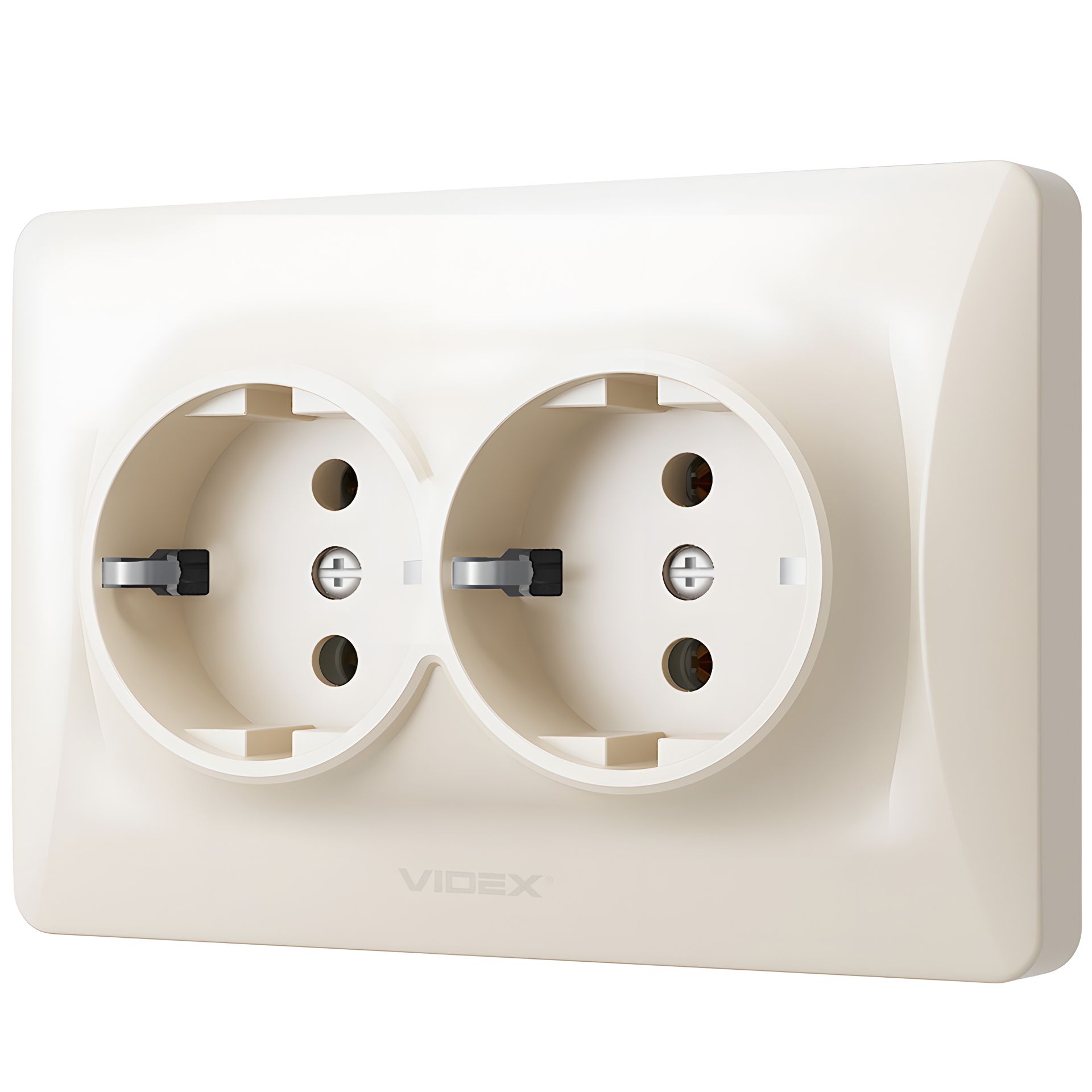 Подвійна розетка VIDEX BINERA VF-BNSK2G-CR кремова із заземленням та підвищеною вогнетривкістю