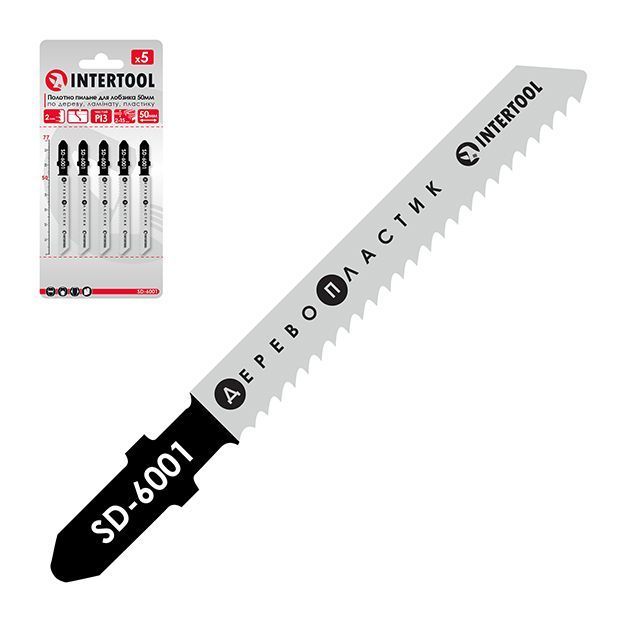 Полотно пиляльне для лобзика, робоча довжина 50 мм, відстань між зубцями 2,0 мм, для робіт по дереву і пластику INTERTOOL SD-6001