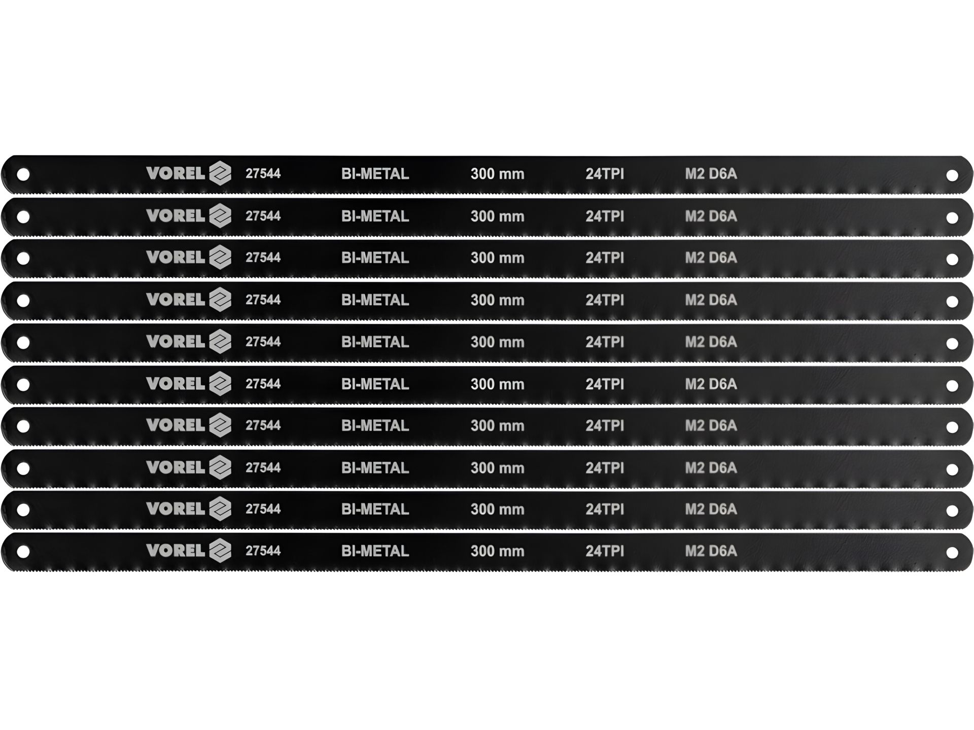 Полотно до ножівки по металу BI-мет М2 D6A, 300x12, 6x0, 65 мм, 24 зуба/1", пак. 10шт, Vorel (27544)