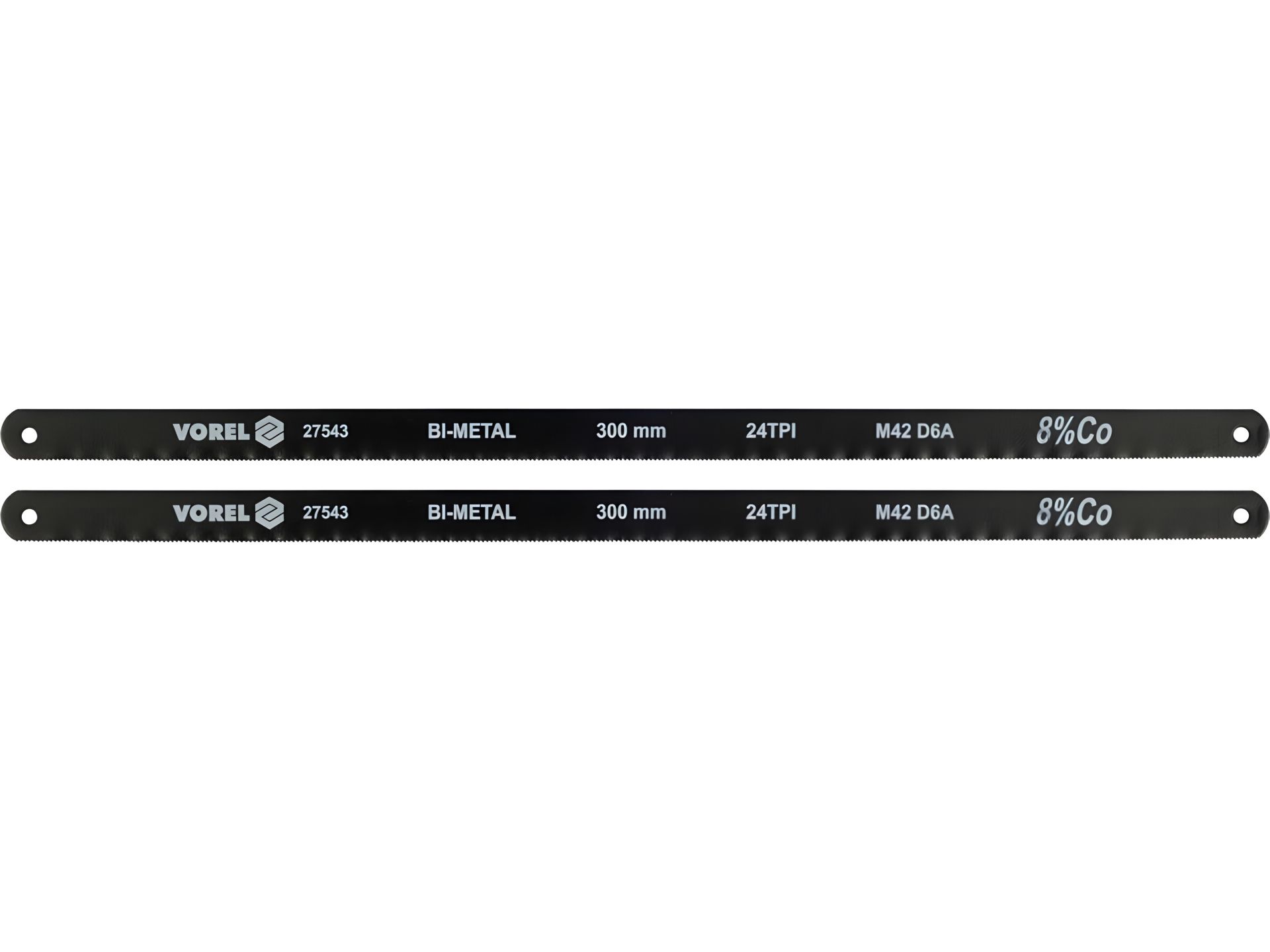 Ріжуче полотно по металу M42 + D6A + Co8%, 300х12,6х0,65 мм, 24 зуба / 1", паків - Vorel 27543
